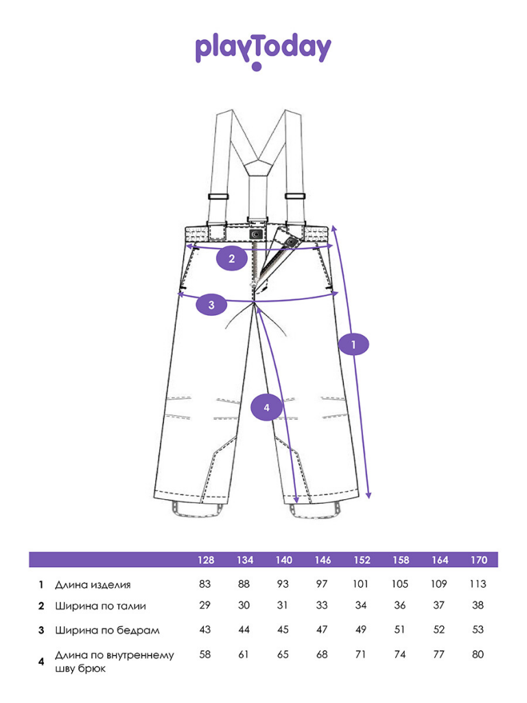 | Размер: рост, см | 74 | 80 | 86 | 92 | 98 | 104 | 110 | 116 | 122 | 128 | 134 | 140 | 146 | 152 | 158 | 164 | 170 |