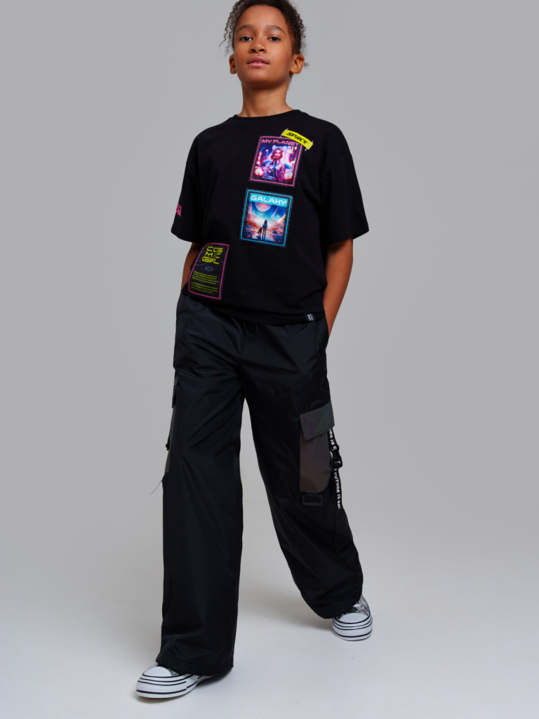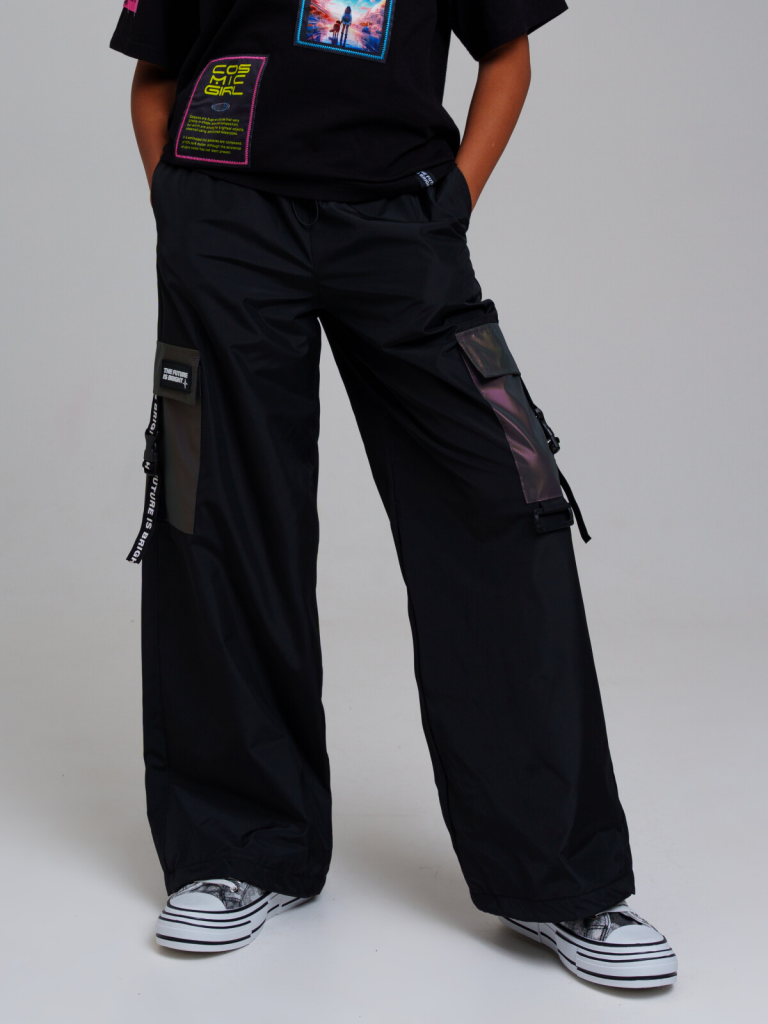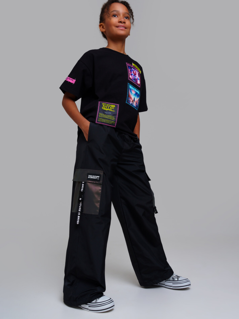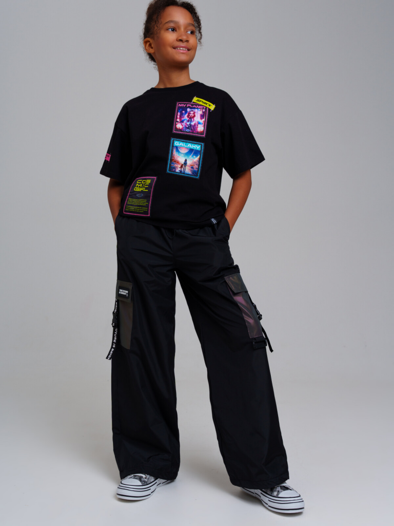 Брюки текстильные с полиуретановым покрытием для девочек черный