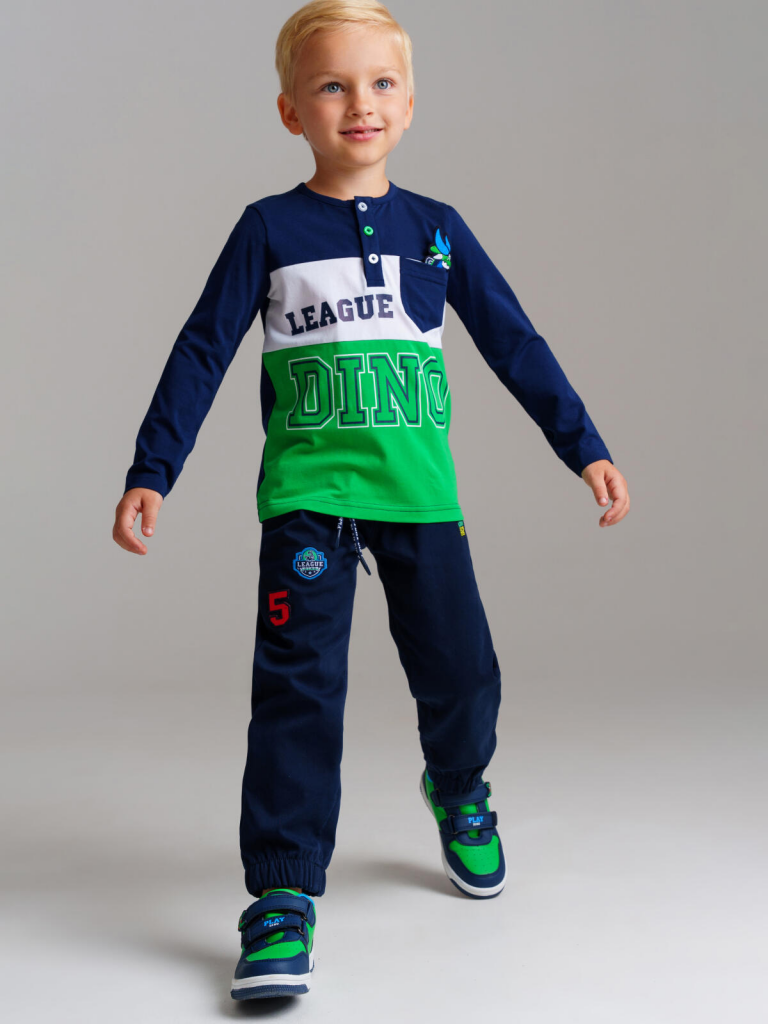 Брюки детские для мальчика. Утепленные штаны с начесом. Высокое содержание хлопка. Брюки на резинке со шнурком. Удобные боковые карманы. Модель из капсульной коллекции DINO CLUB (ДИНО КЛАБ). Соберите полный образ в едином стиле! Брюки будут актуальны для детского сада, в садик, для прогулок.
