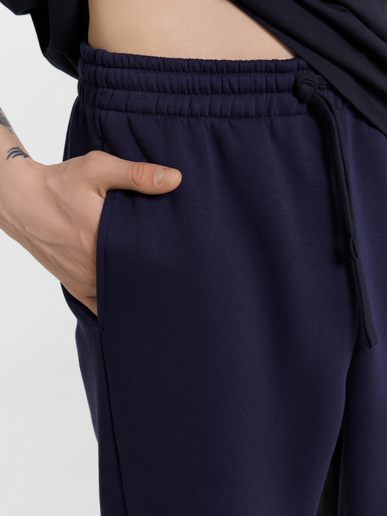 Брюки прямые слегка зауженные к низу, посадка средняя.