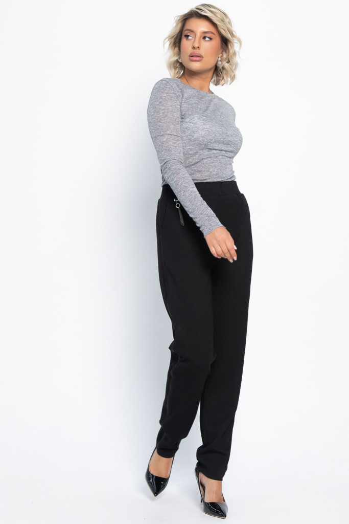 Красивые женские брюки — один из основных элементов гардероба любой современной женщины. Женские брюки чёрного цвета — это приобретение, которое никогда не потеряет своей актуальности. Брюки из плотного эластичного трикотажа хорошо смотрятся на любом типе фигуры. Изделие с карманами, по бокам отделочные лампасы, по шву притачивания пояса декоративный элемент — подвеска. Универсальный фасон брюк позволит создать офисный, повседневный и праздничный образы.