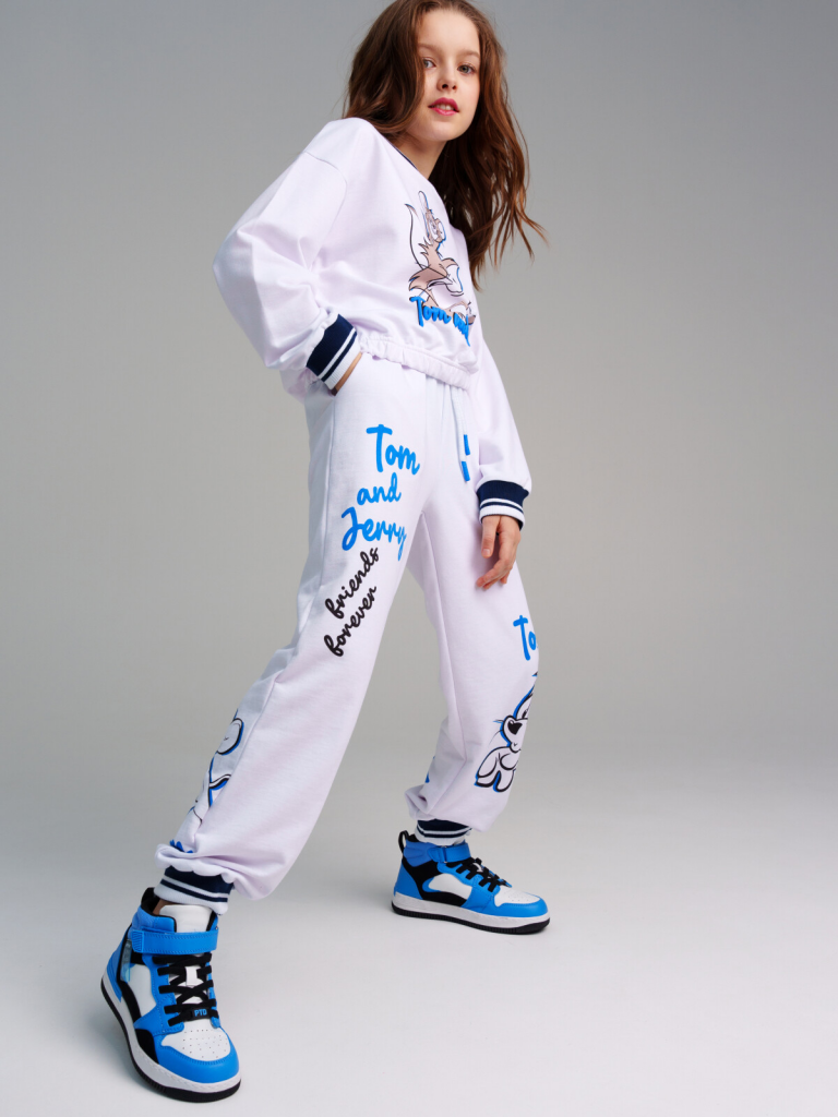 Брюки oversize из french terry. Карманы в боковых швах. Эластичный пояс со шнурком. Манжеты брюк в эластичный рубчик.