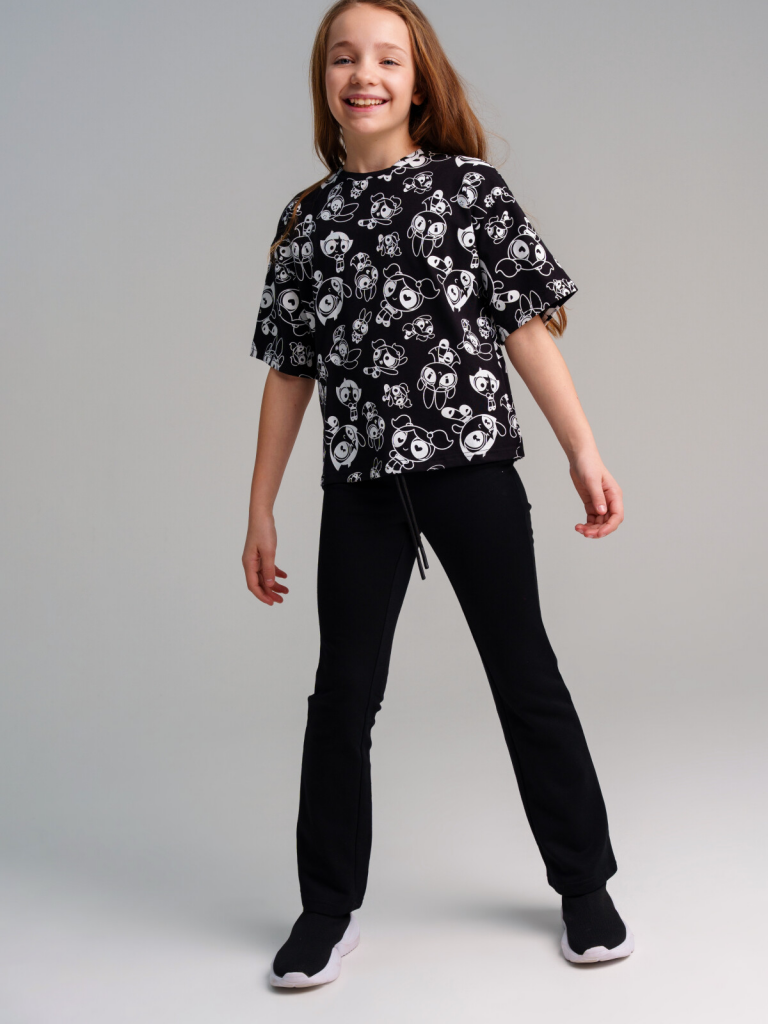 Брюки клеш из футера. Эластичный пояс со шнурком.
