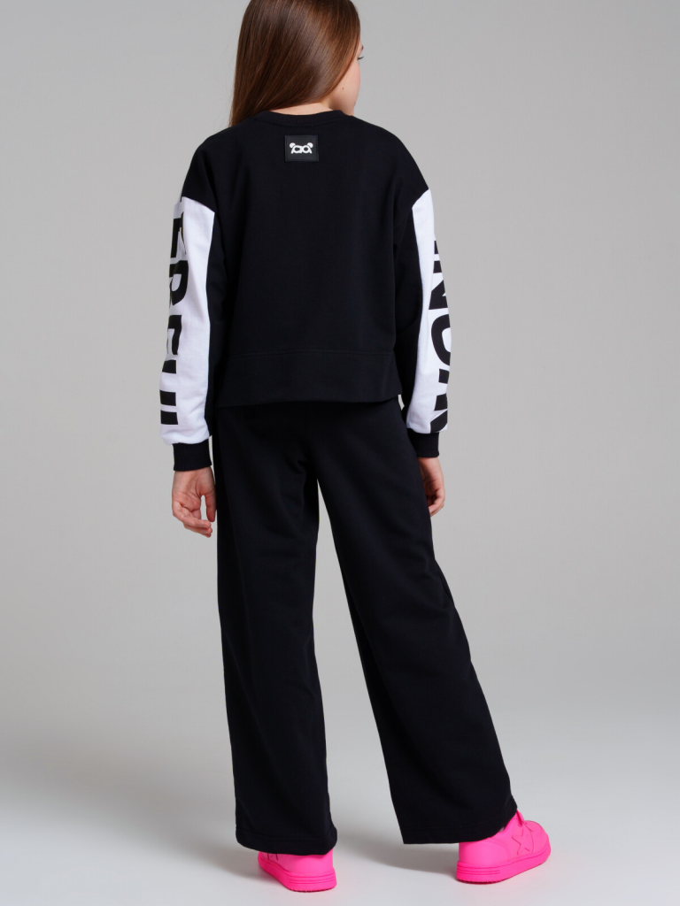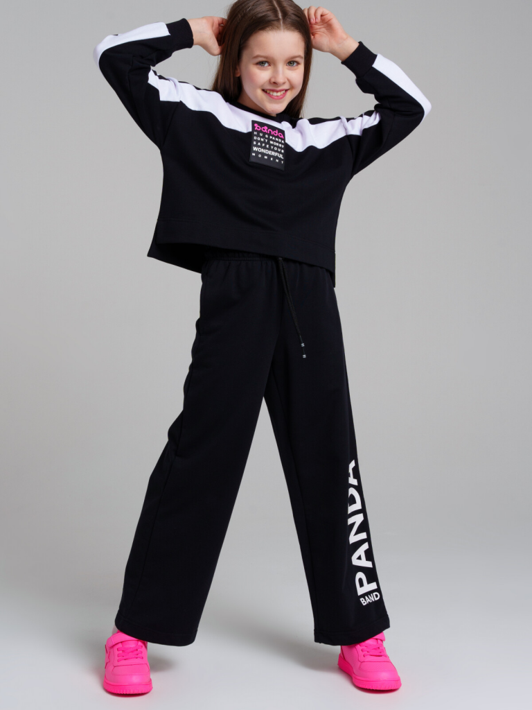 Брюки из футера. Высокое содержание хлопка. Модель прямого силуэта. Карманы в боковых швах. Эластичный пояс со шнурком.