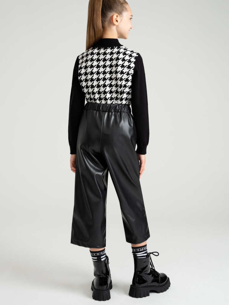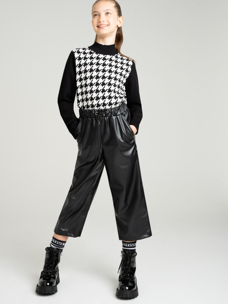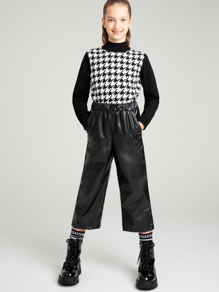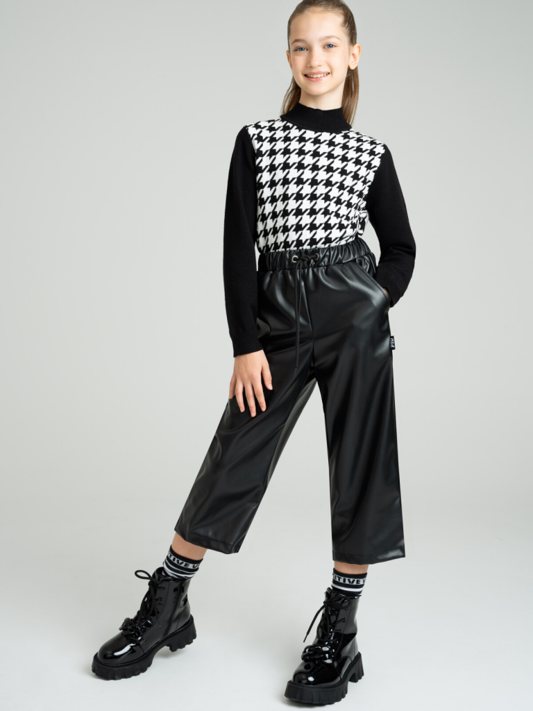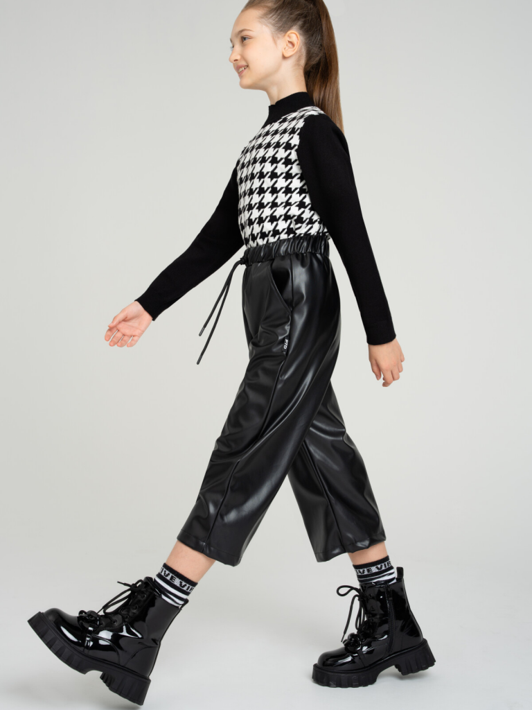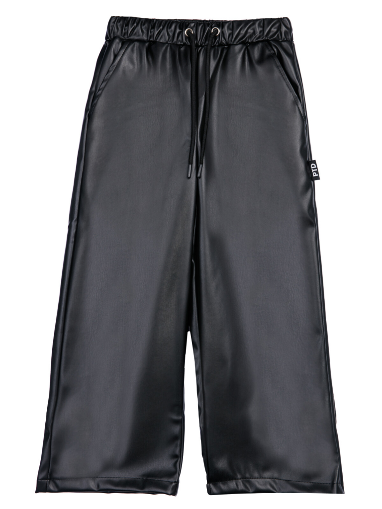 Брюки из экокожи. Посадка - кюлоты. Эластичный пояс со шнурком для оптимальной посадки. Карманы в боковых швах.