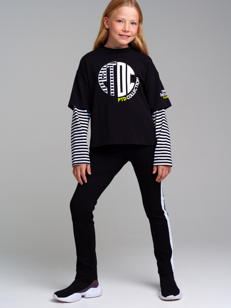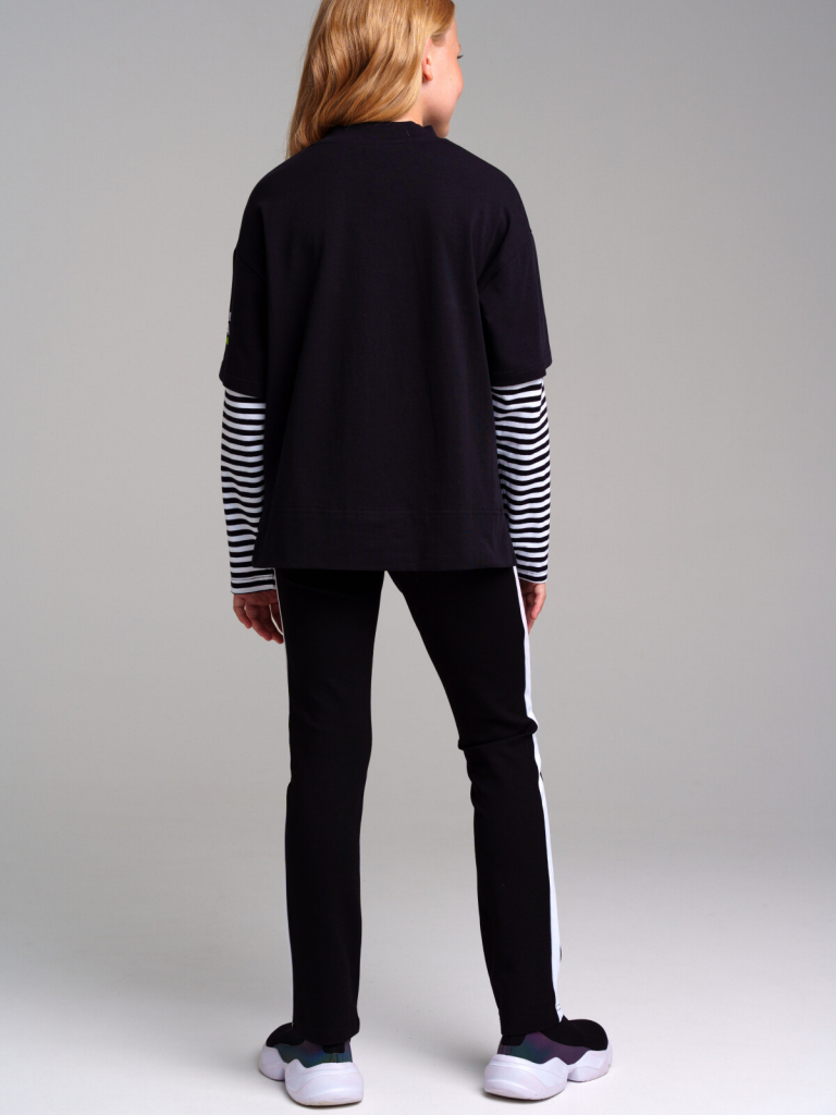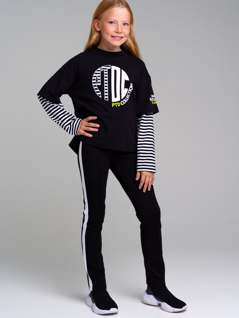> Брюки трикотажные для девочек черный,белый