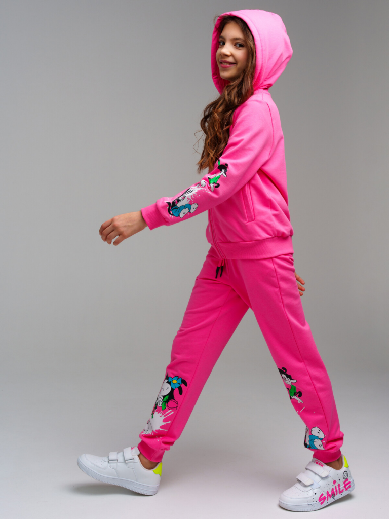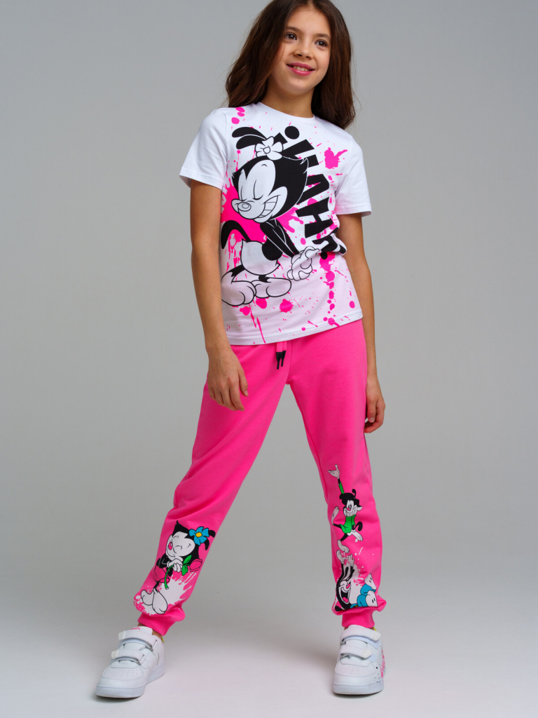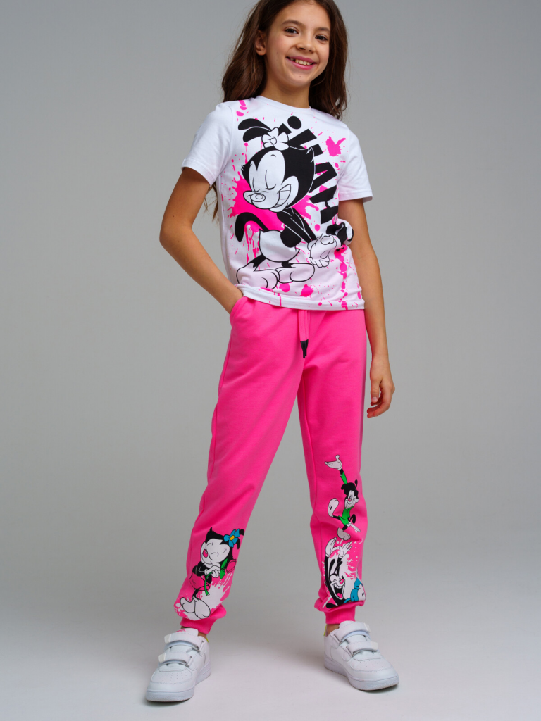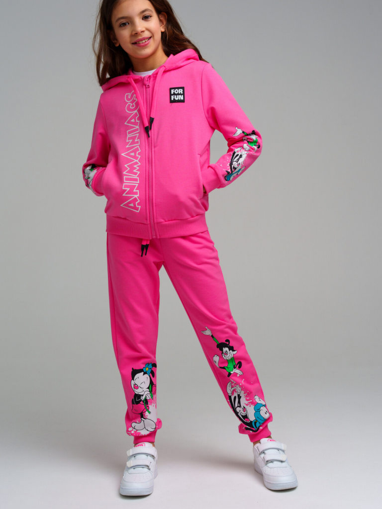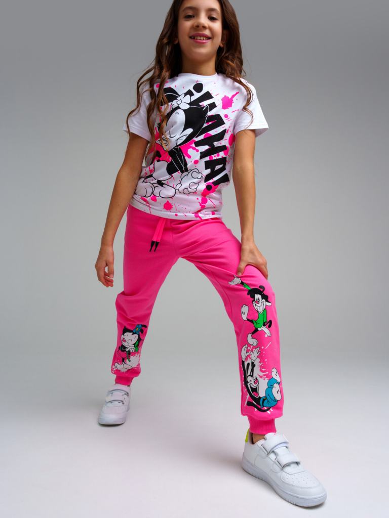 > Брюки трикотажные для девочек фуксия,разноцветный