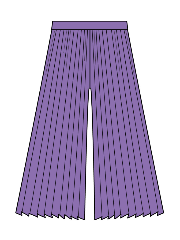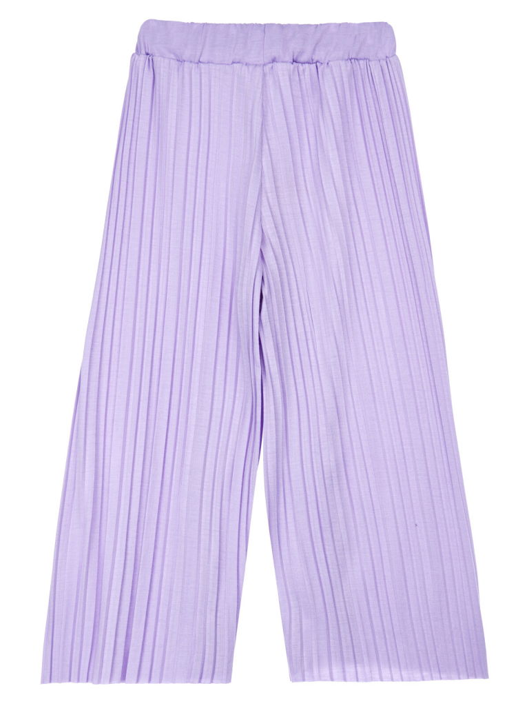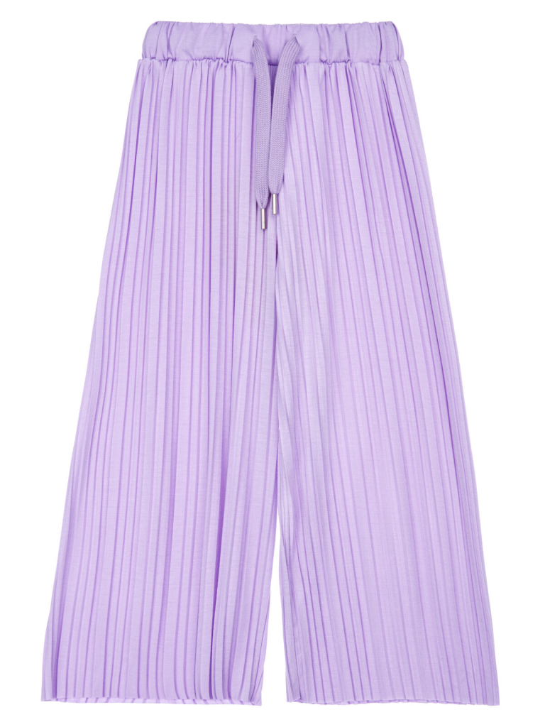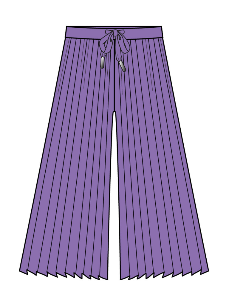 Кюлоты из плиссированного трикотажа. Высокое содержание хлопка. Благодаря наличию эластана в составе ткани изделие проще в уходе и держит форму. По талии внутренний эластичный пояс со шнурком.