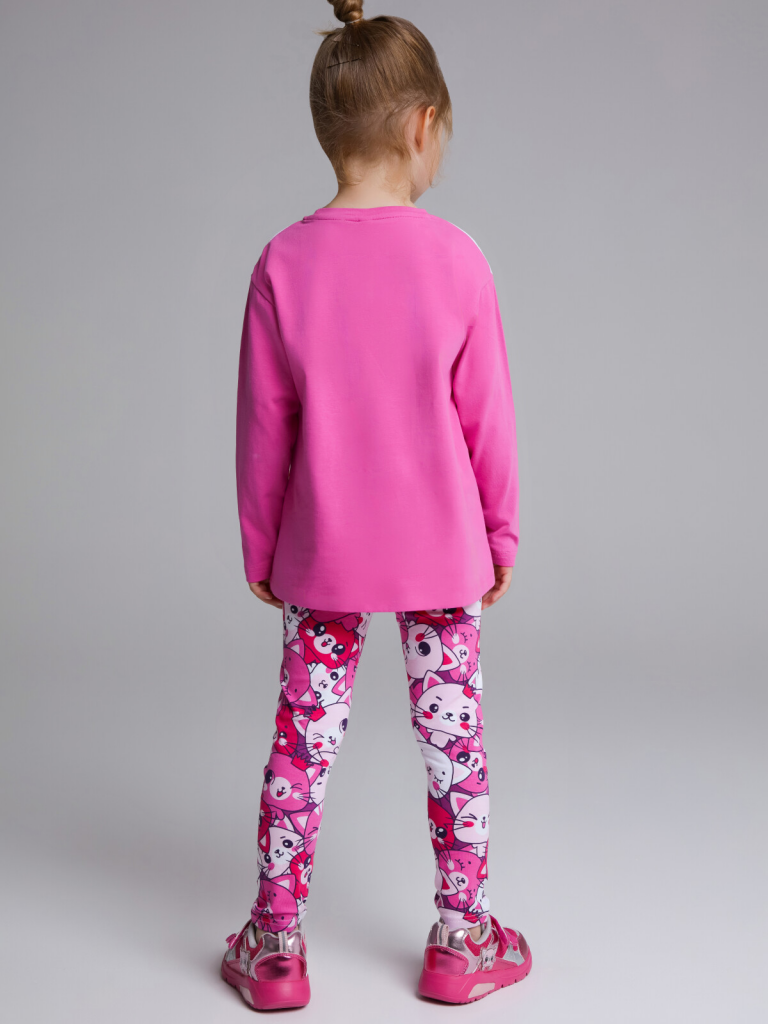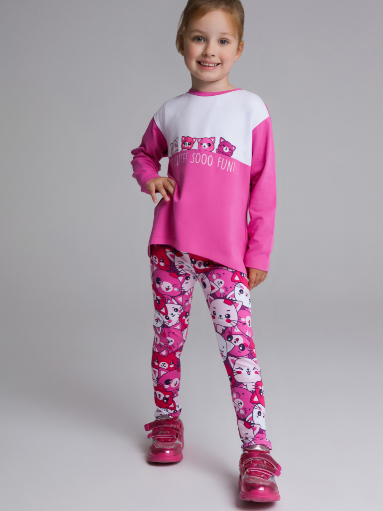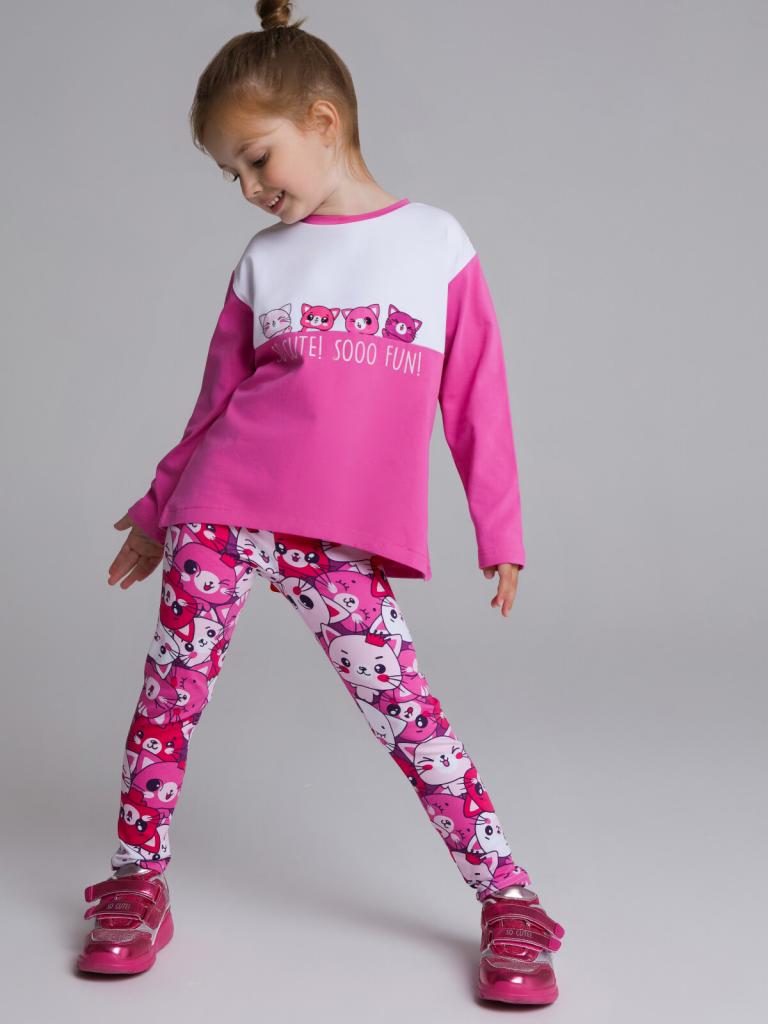 > Брюки трикотажные для девочек (легинсы) розовый,белый