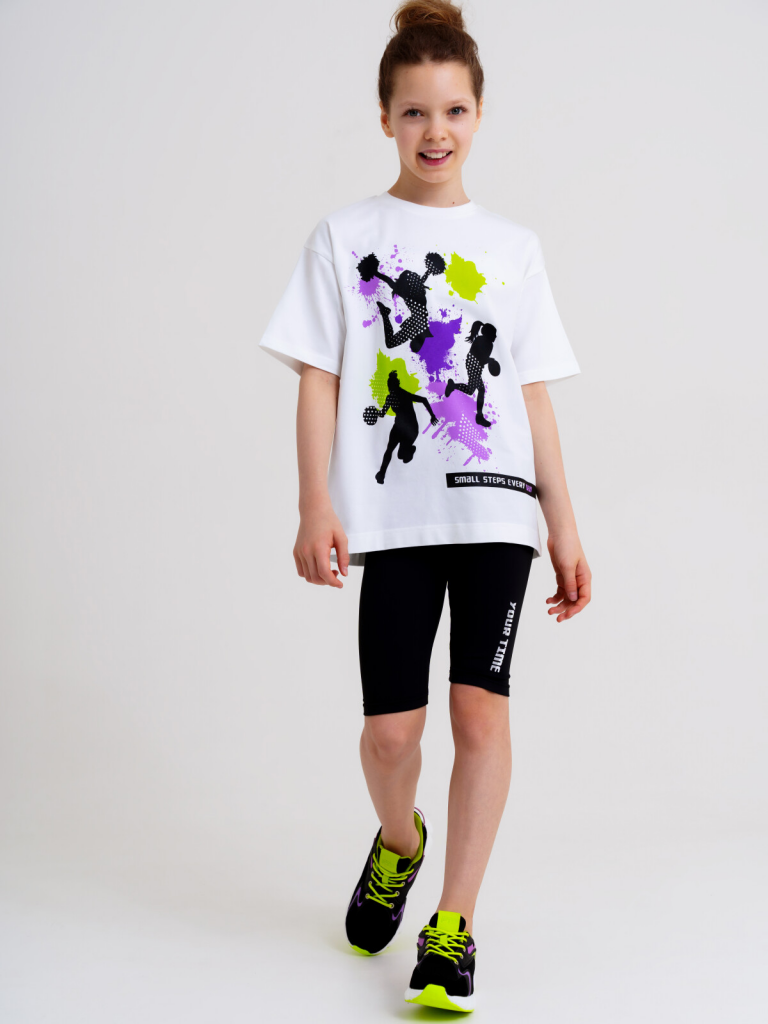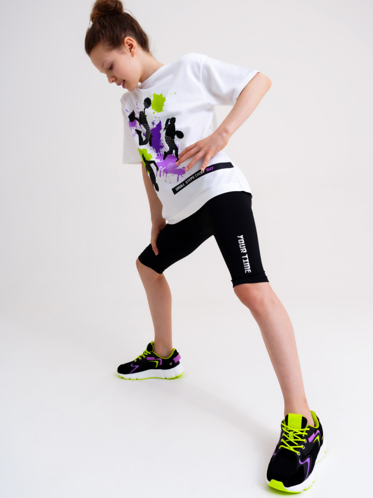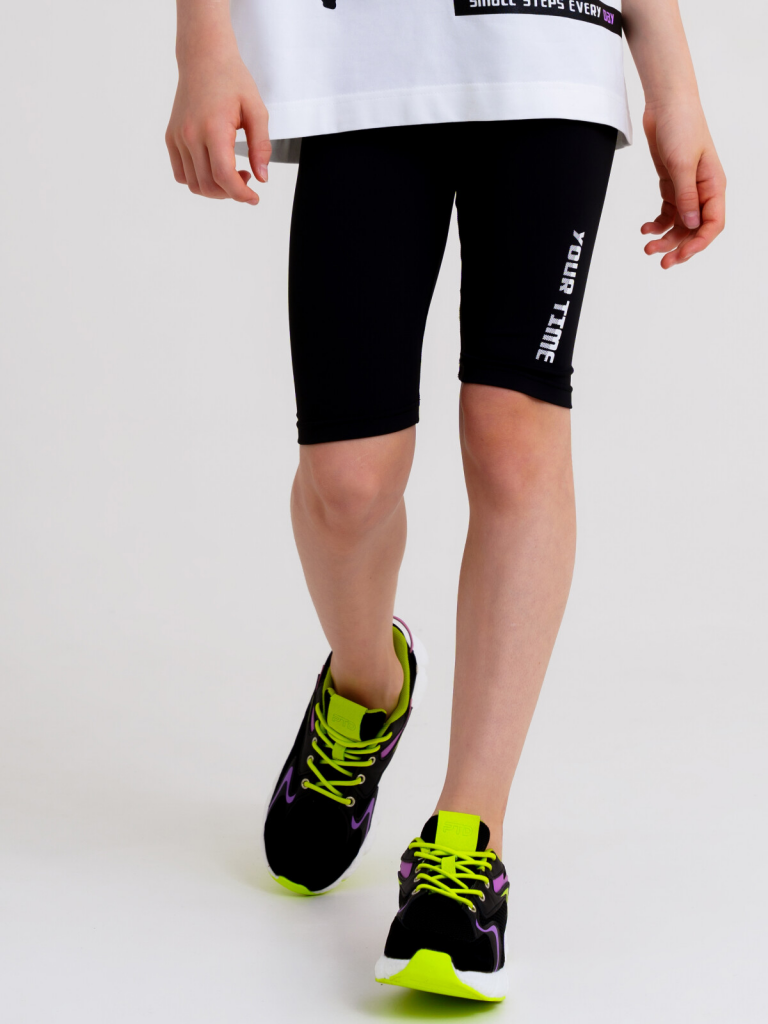 Спортивные черные легинсы (велосипедки) - необходимый атрибут девочки подростка для занятий физкультуры и спорта, как на улице, так и в зале. С футболкой или толстовкой, легинсы составят стильный красивый комплект в школу. Мягкое трикотажное полотно создаст комфорт для школьницы.