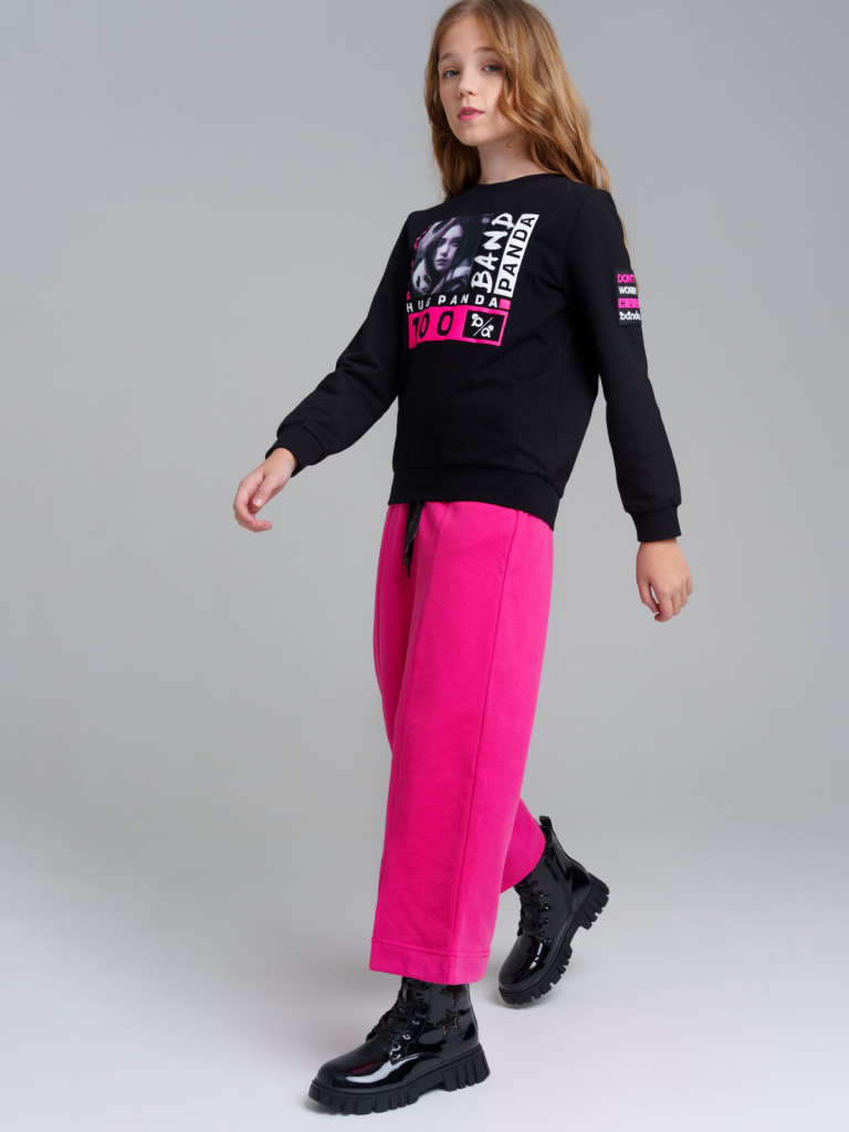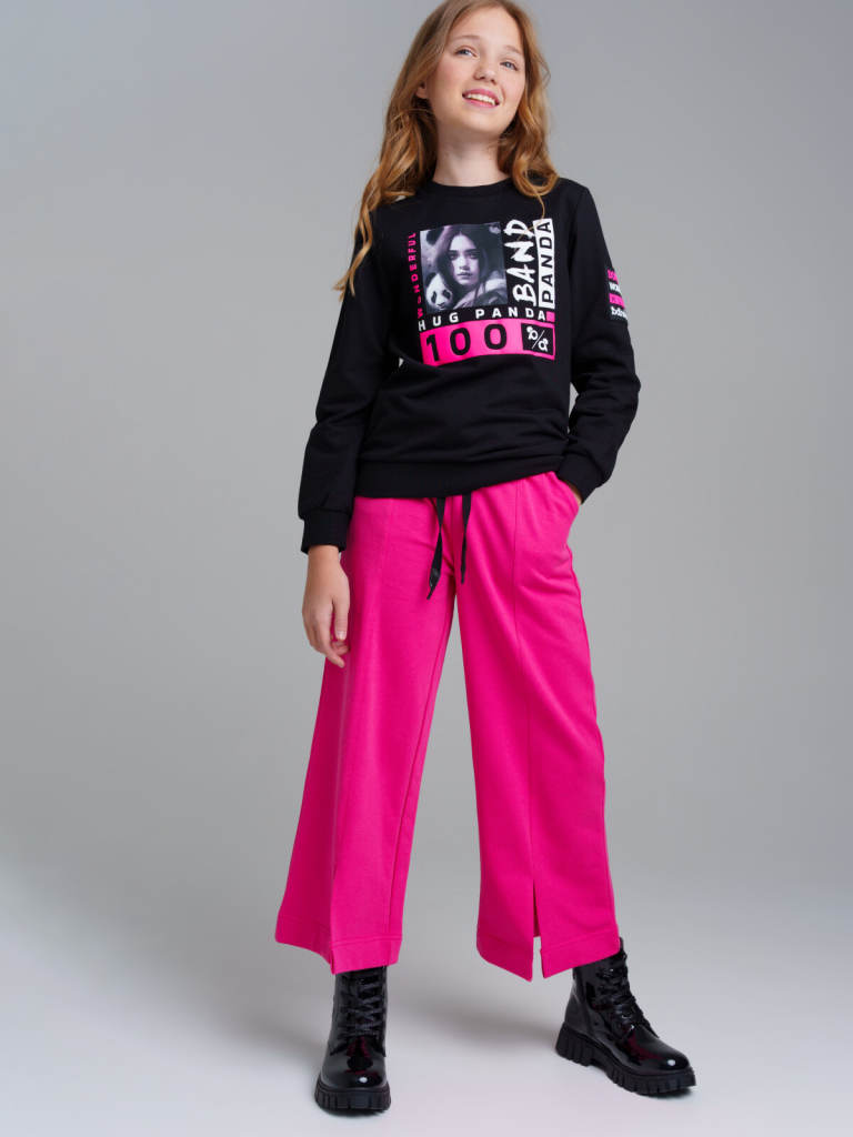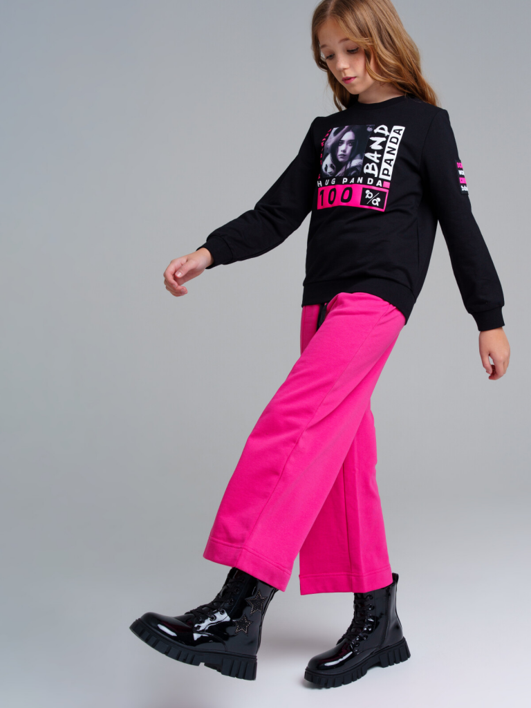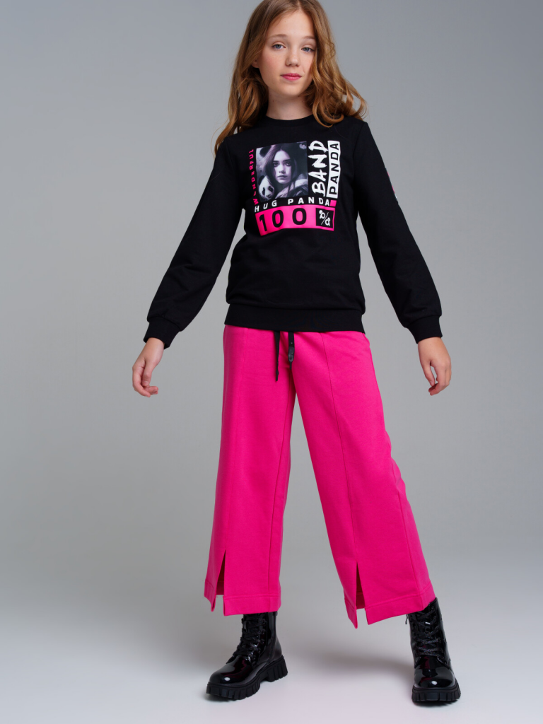 Брюки из french terry. Модель свободного кроя с широкими штанинами. Эластичный пояс со шнурком. Функциональные карманы.