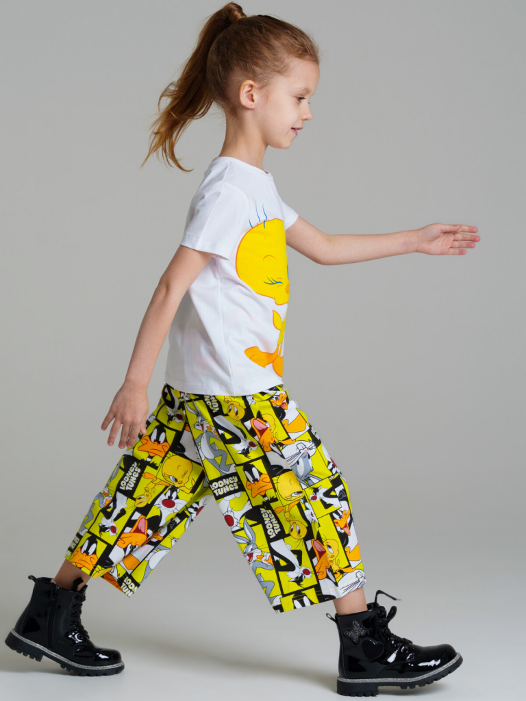 Брюки-трубы из качественного и приятного на ощупь трикотажа джерси. Высокое содержание хлопка 95%. Благодаря наличию эластана в составе ткани изделие проще в уходе и держит форму. Эластичный пояс.