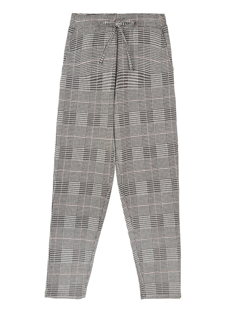Трикотажные брюки из жаккардового полотна. Благодаря высокой посадке брюки не сползают при движении. Эластичный пояс с тесьмой позволяет легко надевать брюки и утягивать до комфортной посадки. Функциональные карманы.