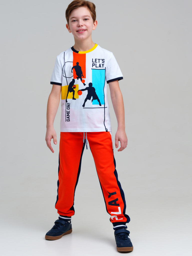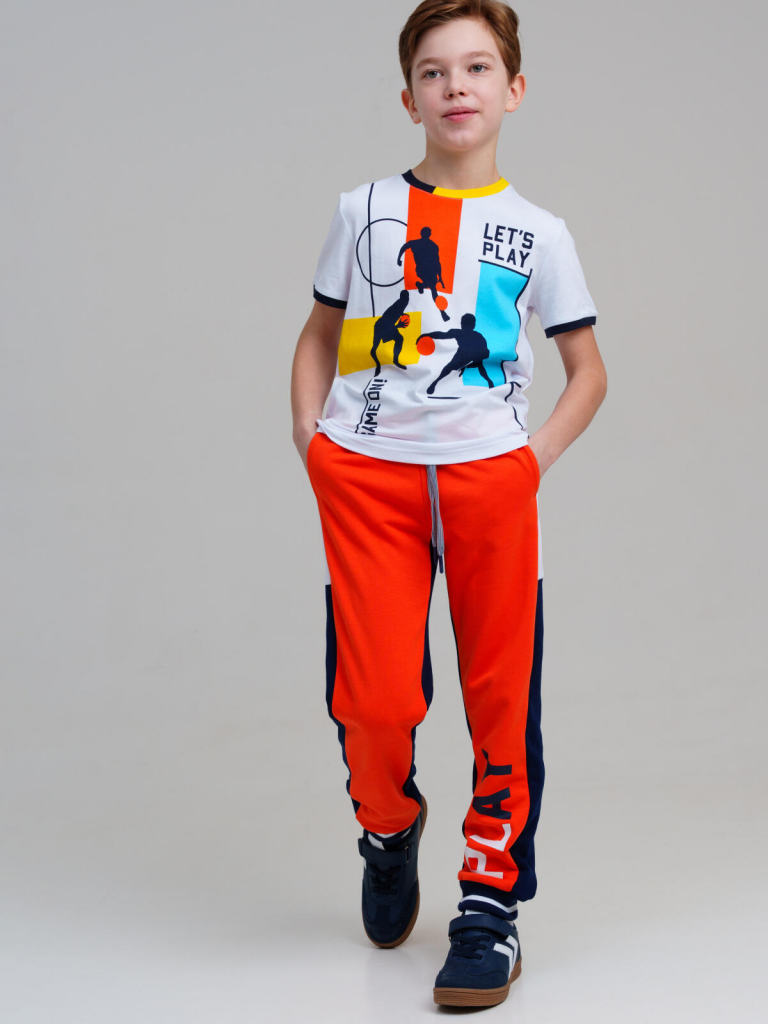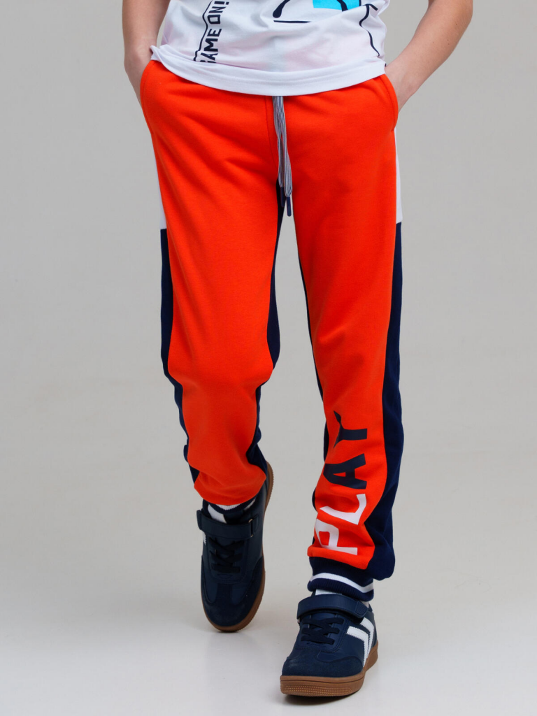 > Брюки трикотажные для мальчиков оранжевый,тёмно-синий