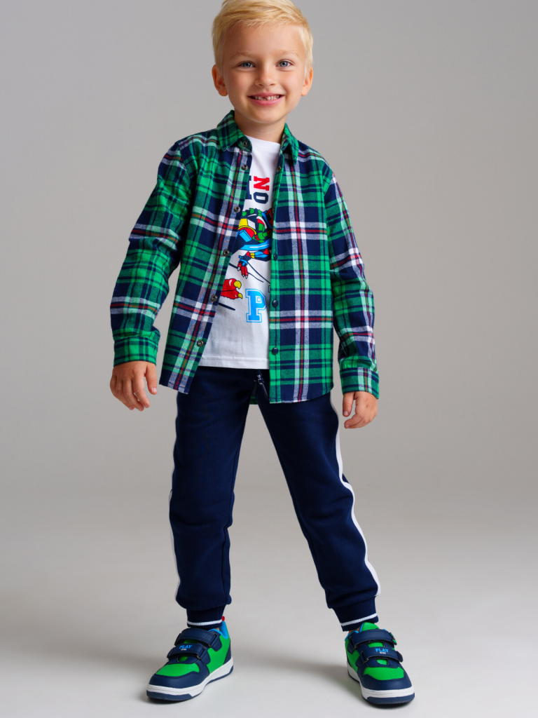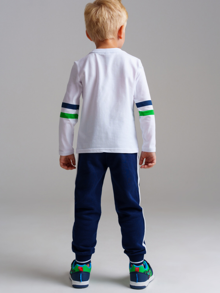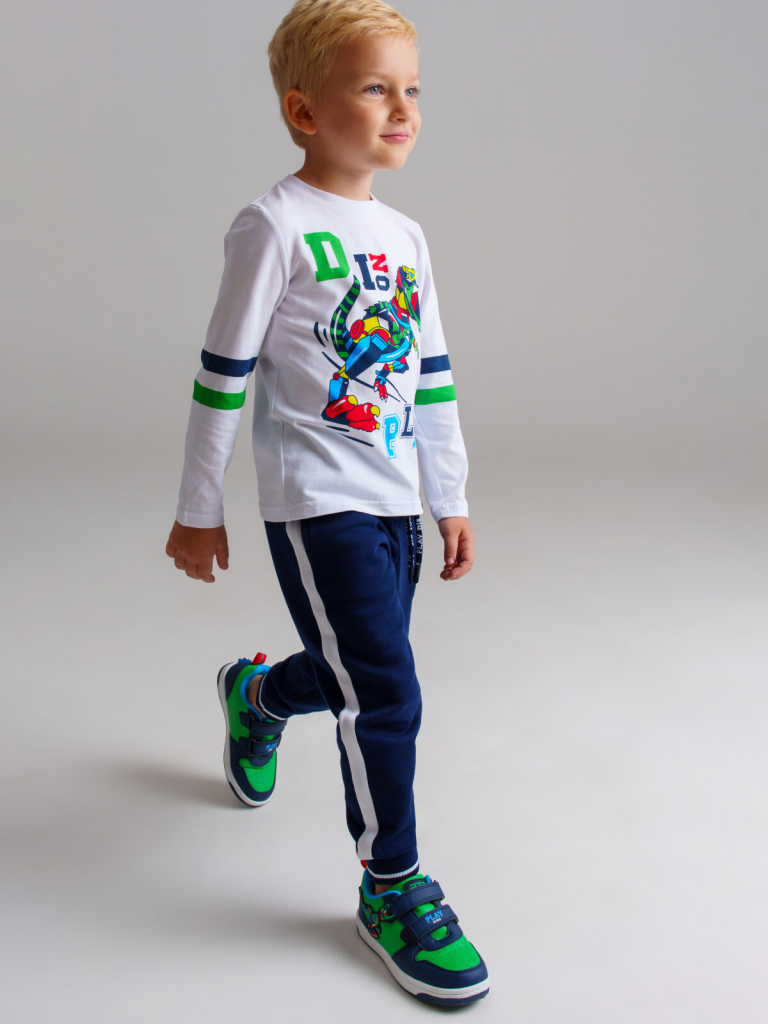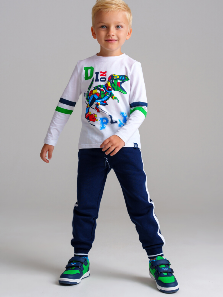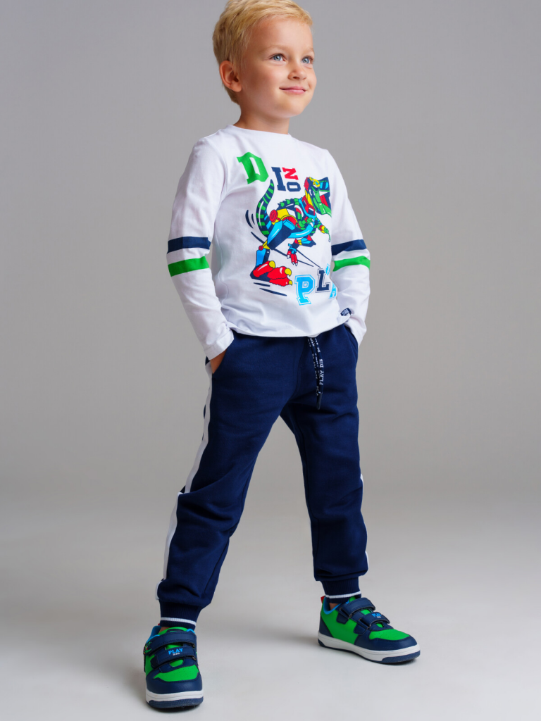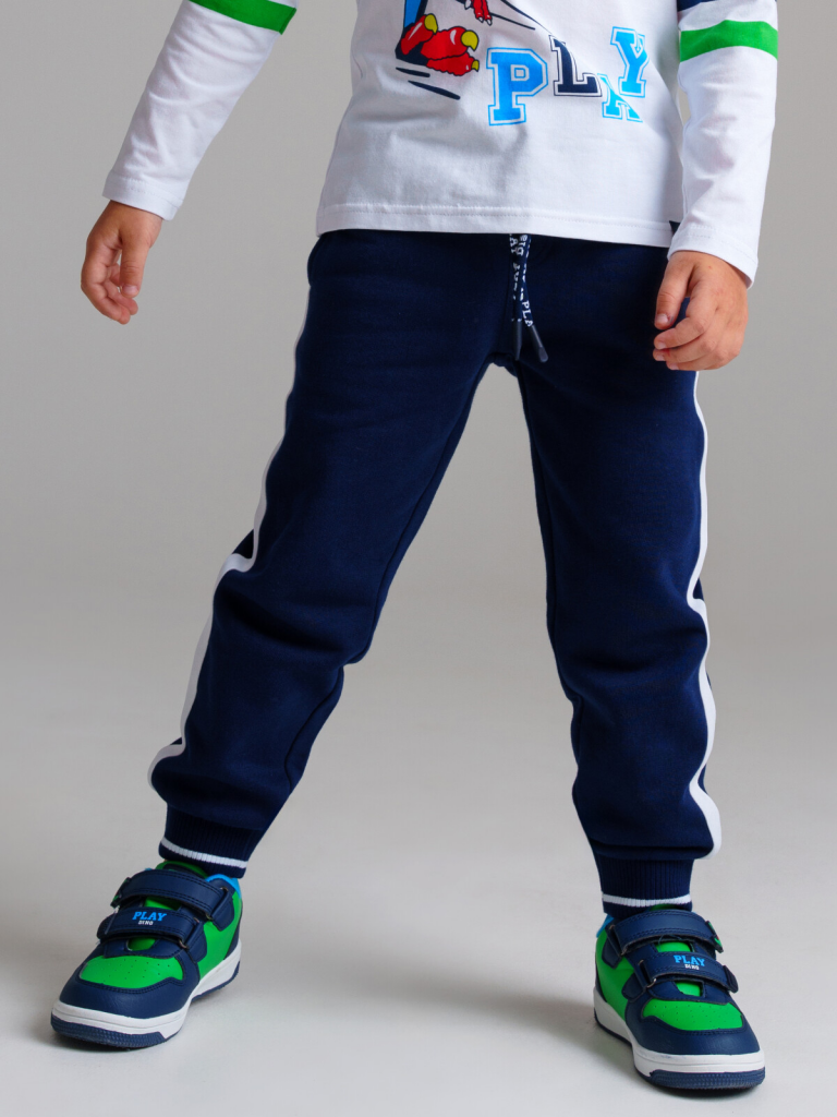 Брюки детские для мальчика. Модные штаны на резинке со шнурком. Высокое содержание хлопка. Удобные боковые карманы. Модель из капсульной коллекции DINO CLUB (ДИНО КЛАБ). Соберите полный образ в едином стиле! Брюки будут актуальны для детского сада, в садик, для прогулок.