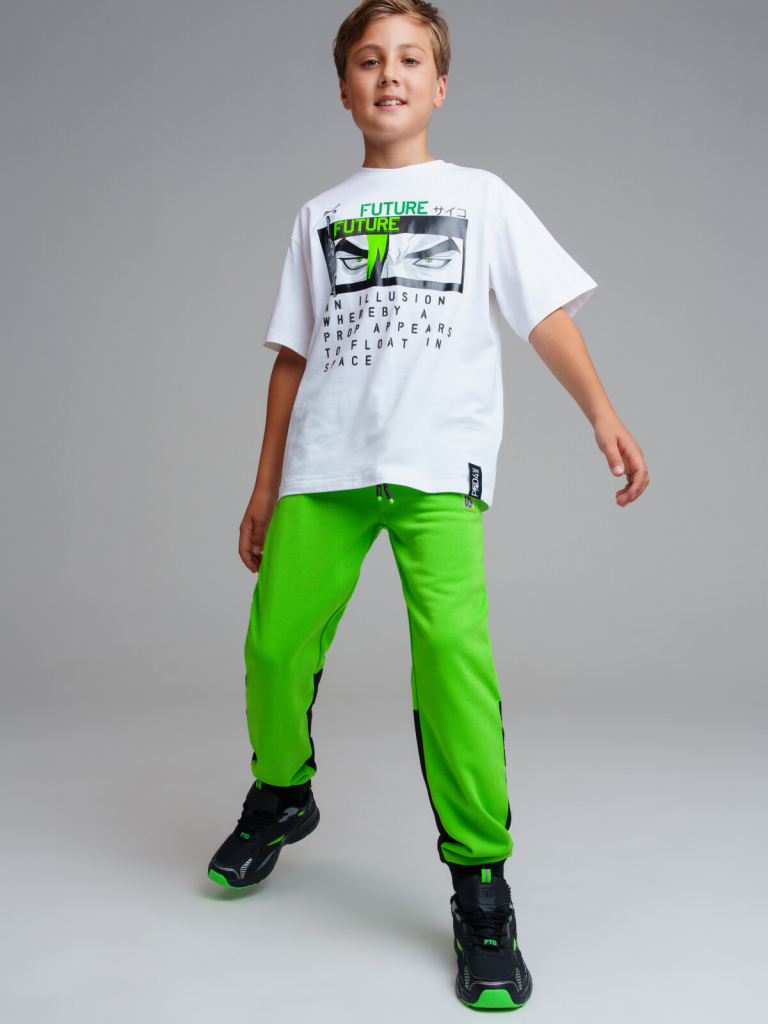 Брюки из футера без начеса для мальчика подростка. Модные штаны на резинке со шнурком. Высокое содержание хлопка. Удобные боковые карманы. Модель из капсульной коллекции B’LUCKY CITY. Соберите полный образ в едином стиле! Модель выполнена из качественного и приятного на ощупь трикотажа.