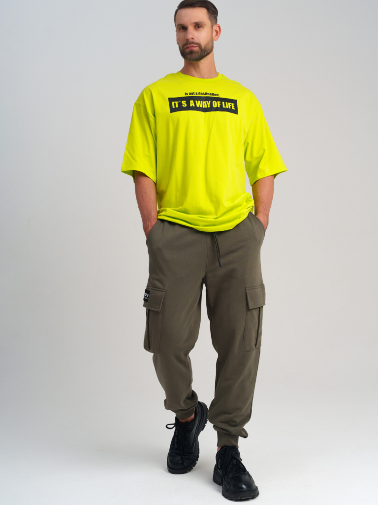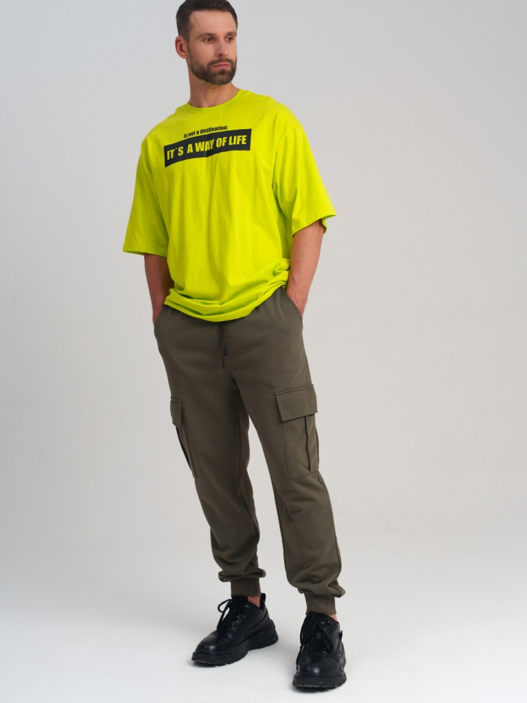 Брюки мужские. Высокое содержание хлопка. Штаны на резинке со шнурком. Функциональные боковые и накладные карманы. Манжеты в эластичный рубчик. Модель выполнена из качественного и приятного на ощупь трикотажа.