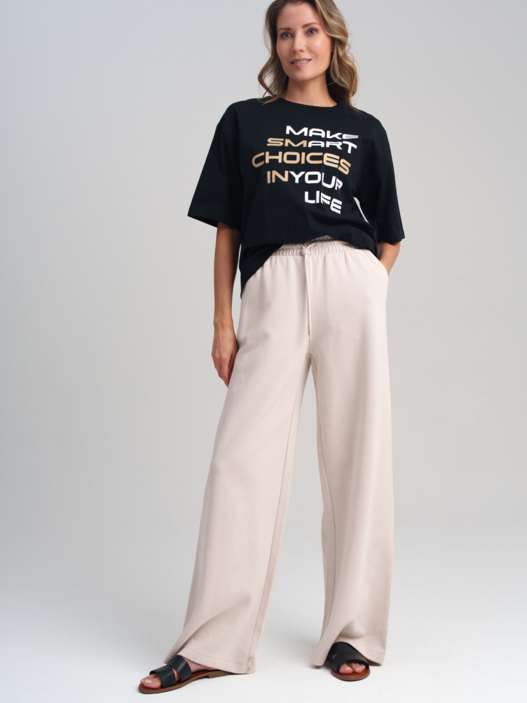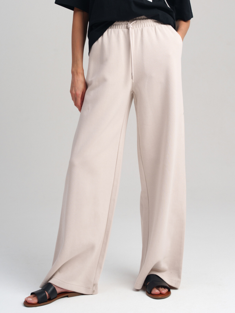 Брюки женские. Штаны на резинке со шнурком. Высокое содержание хлопка. Функциональные карманы. Модель выполнена из качественного и приятного на ощупь трикотажа.