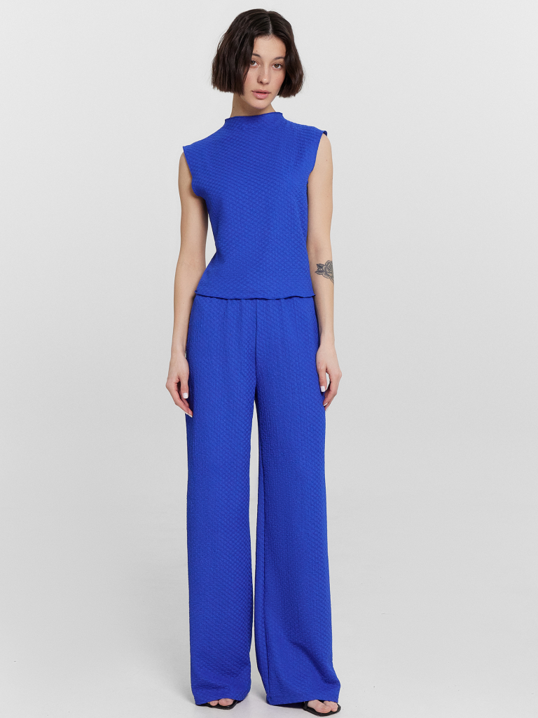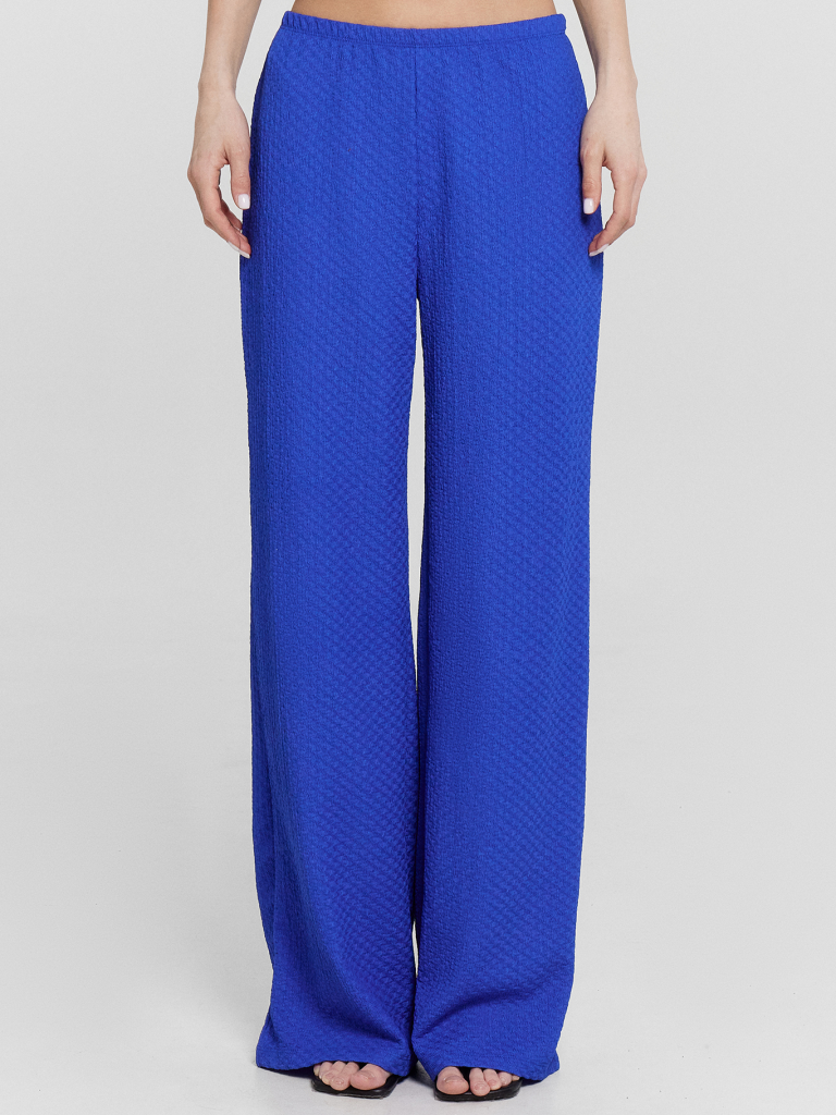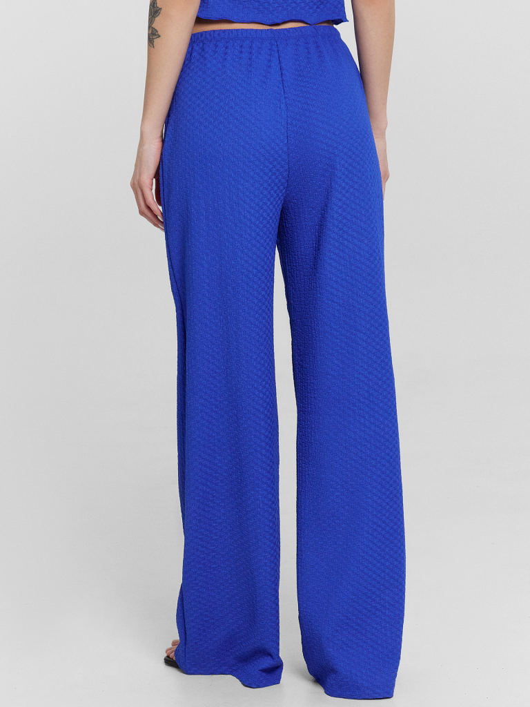 Эти женские прямые брюки — безупречное сочетание комфорта и элегантности! Свободный силуэт и средняя посадка обеспечивают удобную посадку, а эластичная талия адаптируется к фигуре, гарантируя максимальное удобство. Благодаря фактурному материалу с эластичными искусственными волокнами модель хорошо тянется, оставаясь легкой и приятной на ощупь. Нижний срез аккуратно обработан швом вподгибку, что повышает долговечность изделия. Этот стильный вариант идеально подходит для создания универсальных образов. Дополните брюки подходящим топом из этой же коллекции — и получите гармоничный и продуманный комплект, который подчеркнет ваш стиль и индивидуальность! Прекрасный выбор для тех, кто ценит удобство и актуальный дизайн.
