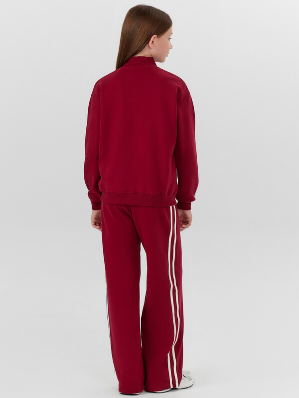 Брюки для девочки прямого кроя с высокой посадкой созданы для повседневного комфорта. Удобный эластичный пояс из рибаны обеспечивает идеальную посадку по фигуре. По бокам - лампасы из кулирки, которые добавляют модели стильный акцент. Модель выполнена из футера без подчеса, отличающегося мягкостью и отличной воздухопроницаемостью. Качественная обработка нижних срезов швом вподгибку гарантирует аккуратный внешний вид после множества стирок. Брюки для девочек Mark Formelle - практичное решение для школы, прогулок и активного отдыха. Благодаря продуманному крою и натуральному составу, они обеспечивают максимальный комфорт в течение всего дня. Классический дизайн позволяет создавать разнообразные образы для любого сезона.