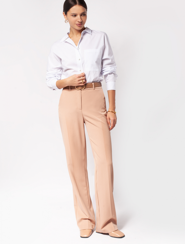 Брюки прямого кроя с – универсальный предмет весеннего гардероба. Высокая посадка и стрелки зрительно увеличивают рост и визуально стройнят. Ткань брюк: поливискоза с эластаном, гарантирует непревзайденный комфорт и формоустойчивость, хорошо тянется и не мнется. В таких брюках будет комфортно даже летом, благодаря наличию вискозы в ткани. Тело будет всегда дышать. Классическая длина отлично сочетается с обувью в любом стиле и подходит всем типам фигуры.