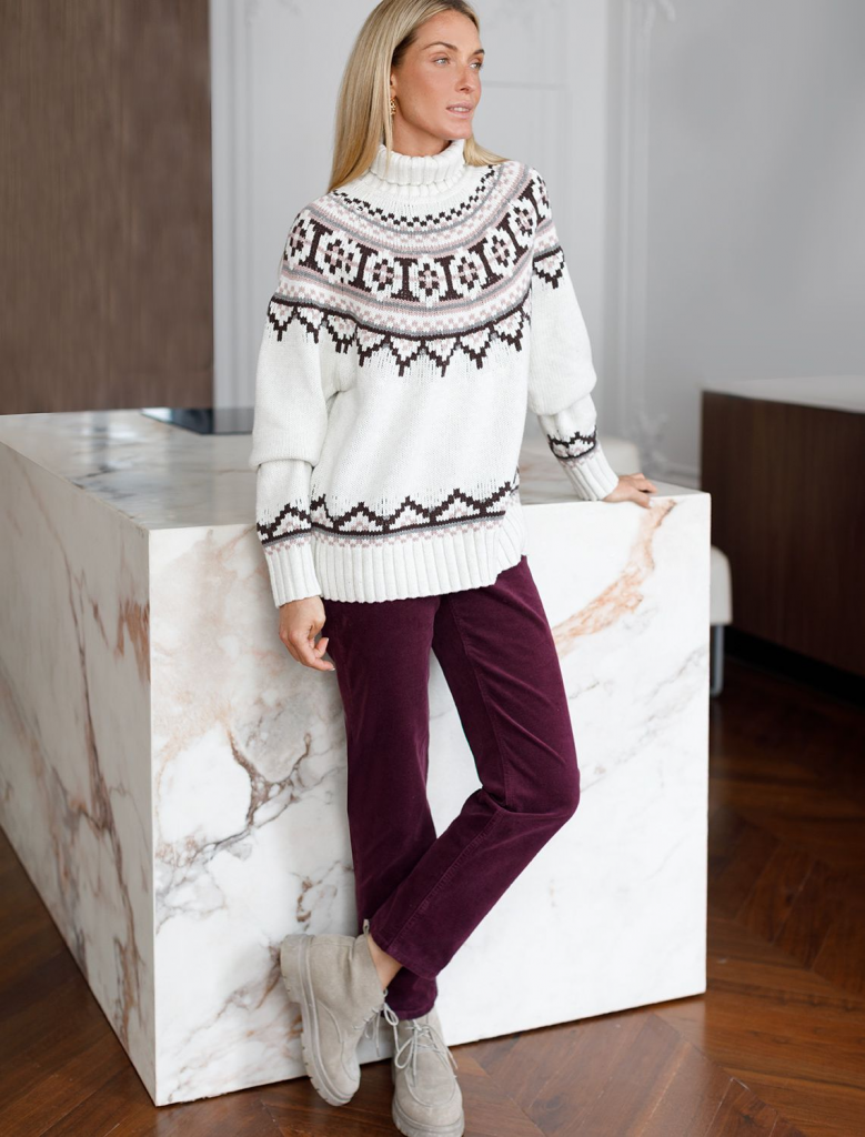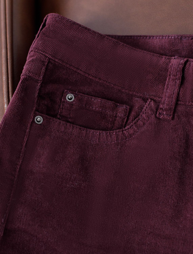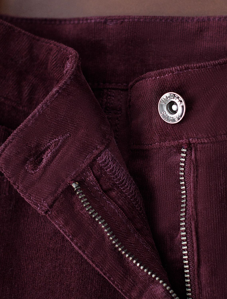 Брюки выполнены из мягкого хлопкового микро-вельвета с добавлением эластана. Изделие комфортно садится по фигуре и не сковывает движения. Модель с пятью карманами, как у джинсов-скинни дополнена высококачественной фурнитурой с фирменным логотипом бренда. Хорошо комбинируется с вязаным трикотажем, блузками и денимом. Как альтернатива брюкам, в нестрогий офисный дресс-код.