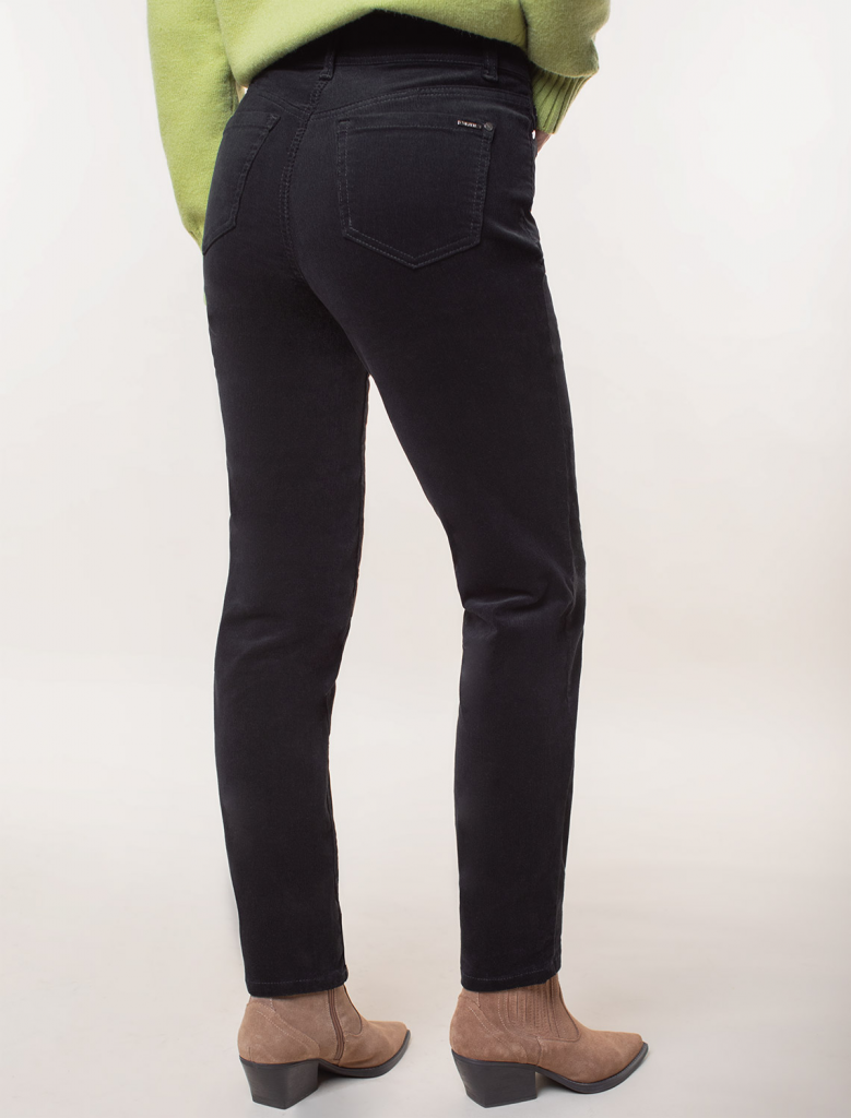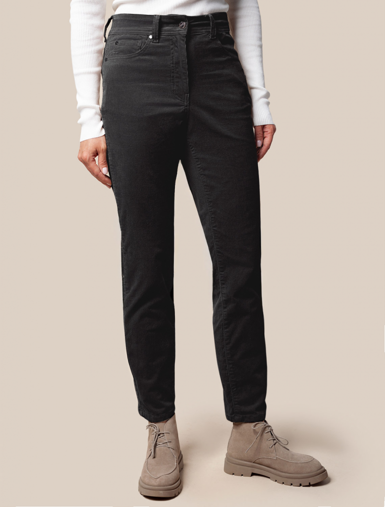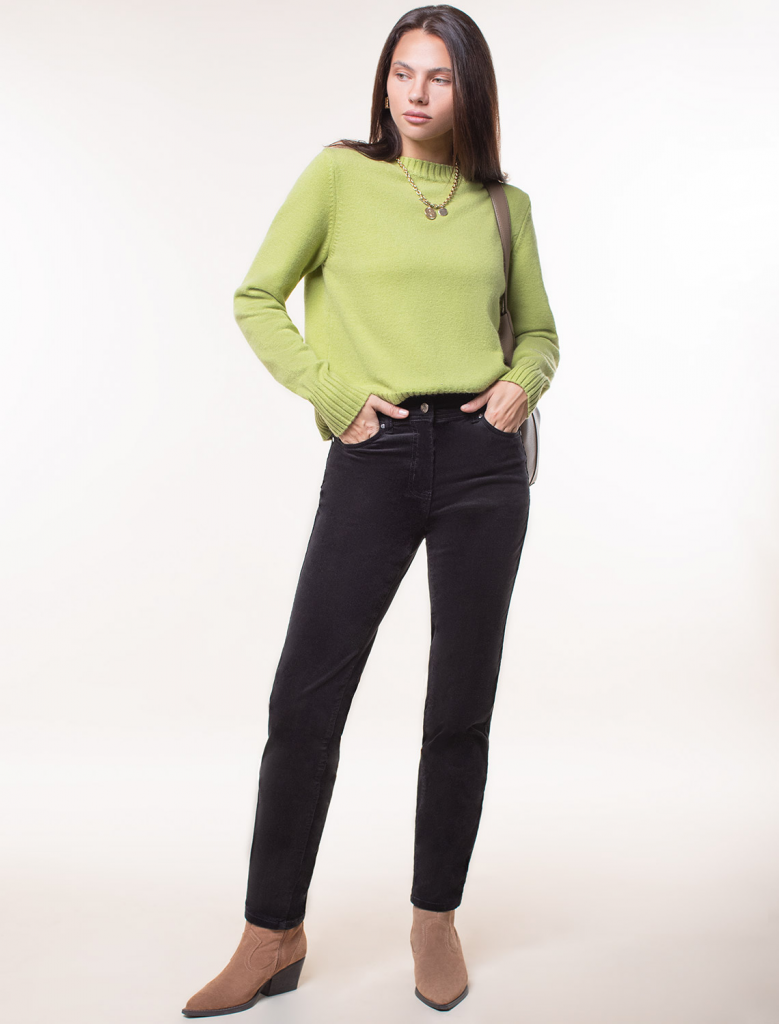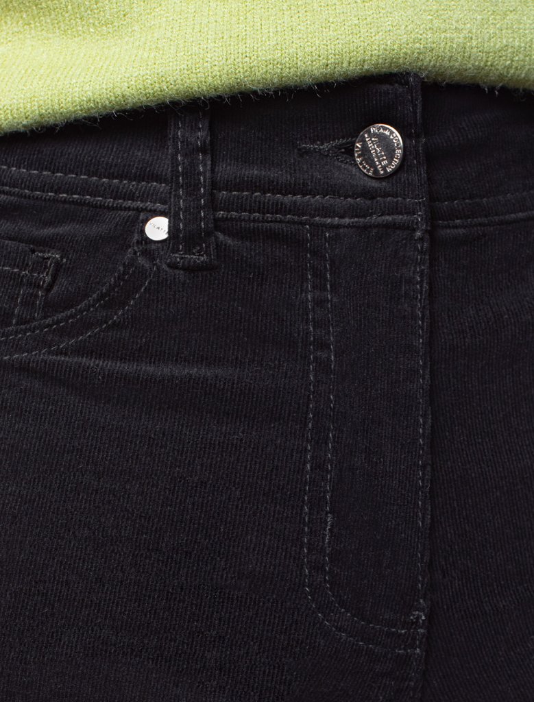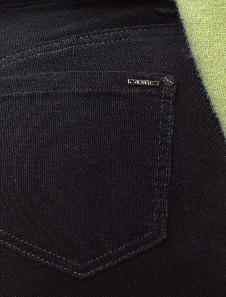 Брюки выполнены из мягкого хлопкового микро-вельвета с добавлением эластана. Изделие комфортно садится по фигуре и не сковывает движения. Модель с пятью карманами, как у джинсов-скинни дополнена высококачественной фурнитурой с фирменным логотипом бренда. Хорошо комбинируется с вязаным трикотажем, блузками и денимом. Как альтернатива брюкам, в нестрогий офисный дресс-код.