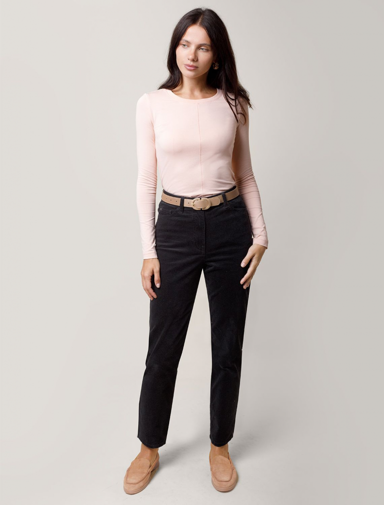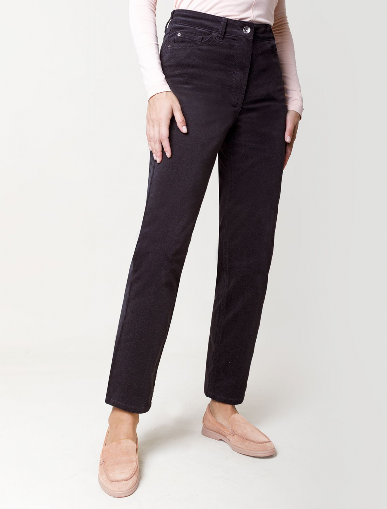 Брюки выполнены из мягкого хлопкового микро-вельвета с добавлением эластана. Изделие комфортно садится по фигуре и не сковывает движения. Модель с пятью карманами, как у джинсов-скинни дополнена высококачественной фурнитурой с фирменным логотипом бренда. Хорошо комбинируется с вязаным трикотажем, блузками и денимом. Как альтернатива брюкам, в нестрогий офисный дресс-код.