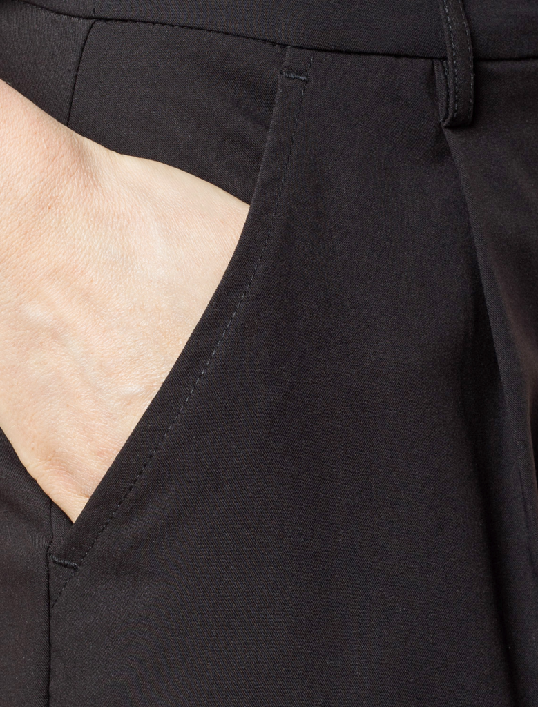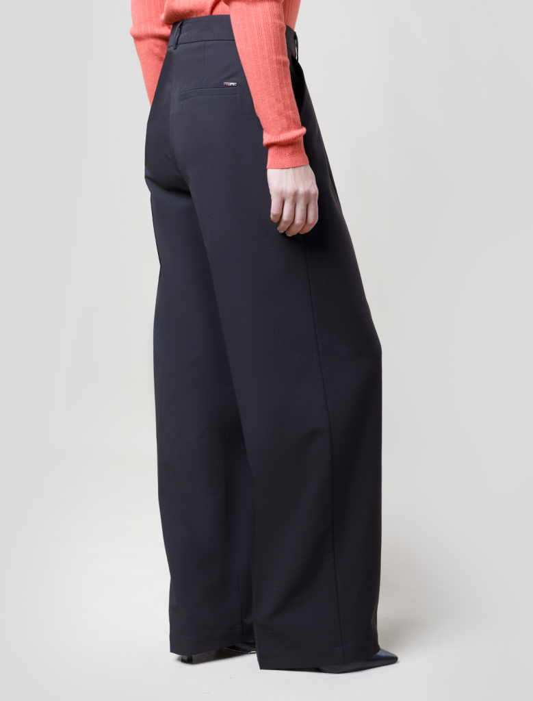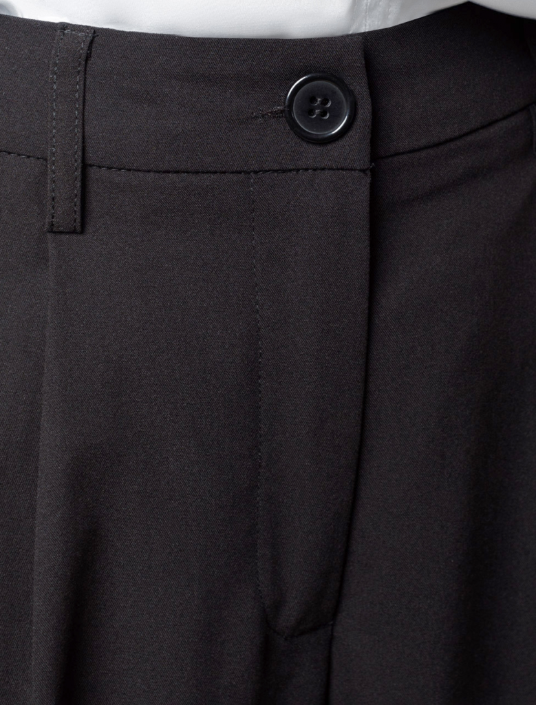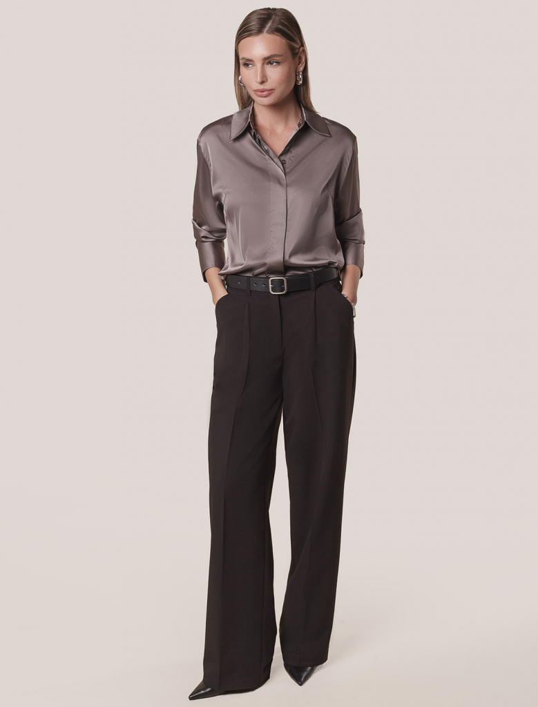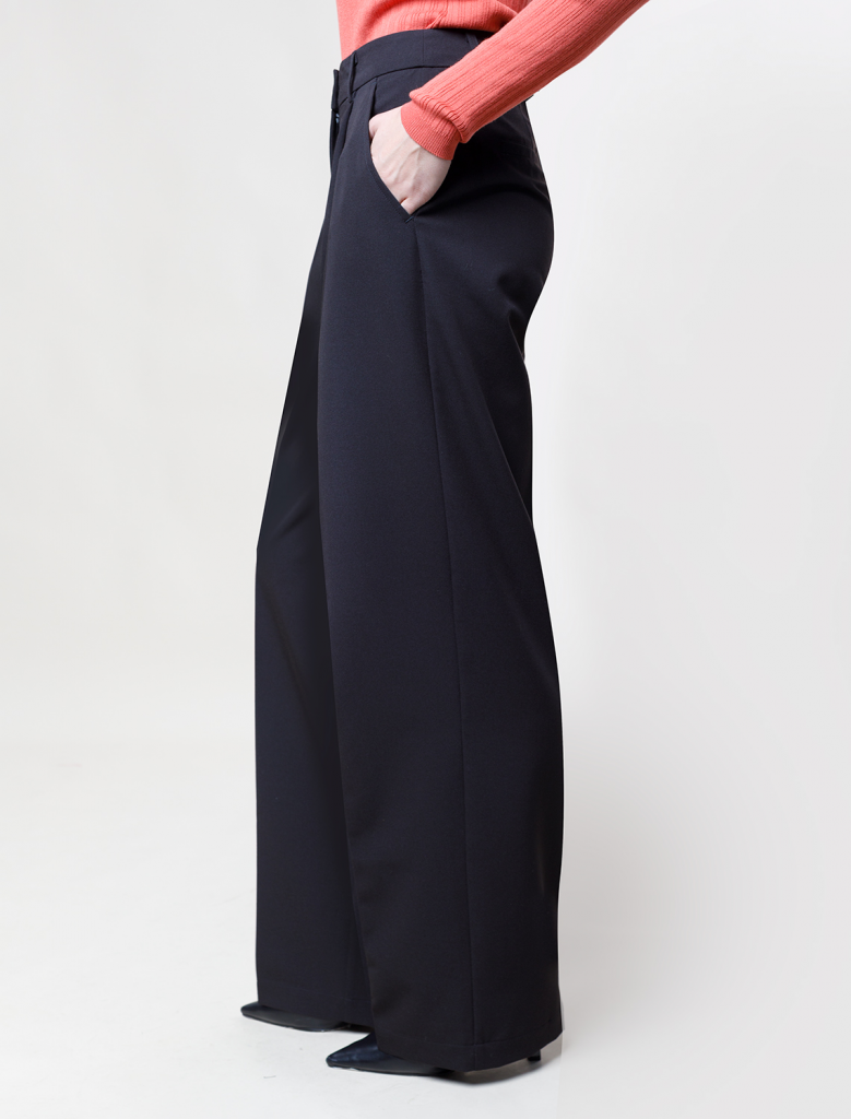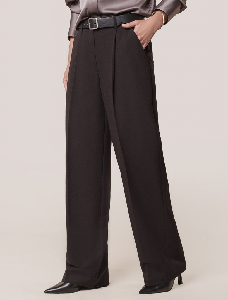Брюки-палаццо выполнены из эластичной поливискозы. Легкая и струящаяся ткань идеально подойдет для повседневных образов. Модель с высокой посадкой визуально стройнит и вытягивает силуэт, удлиняет ноги. По верхнему краю спереди классически заложены складки, что придает свободы и простора в районе бедер. Свободный силуэт подходит для любой фигуры.