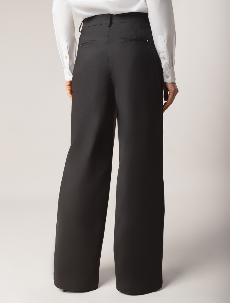 Брюки-трубы выполнены из плотной хлопковой эластичной ткани с добавлением нейлона. Любимая классика делового стиля, которая должна быть в любом гардеробе, так как такая вещь практична и многофункциональна. Для особого случая на важной встрече в паре с блузкой или для офисного дресс-кода с топом и жакетом. В повседневной жизни с более неформальным верхом и обувью на высоком или низком каблуке.