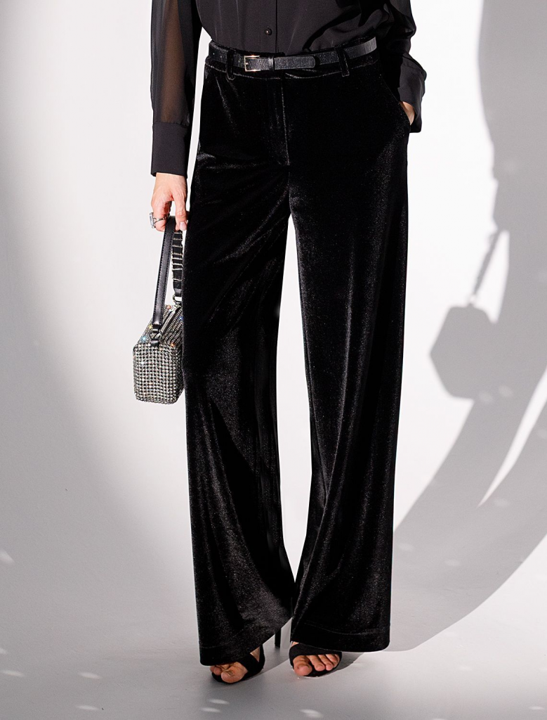 Брюки палаццо созданы для тех, кто ценит благородный стиль и комфорт. Мягкая бархатная ткань придает образу лаконичный блеск и особый шарм,. Благодаря эластичной ткани свободные брюки подойдут на любую фигуру, подчеркивая достоинства силуэта и позволяя чувствовать себя уверенно в любой ситуации, Вы будете чувствовать себя уверенно. Лаконичный крой прямых брюк гармонично сочетается с повседневными вещами, превращая образ в шикарный вариант для вечерних мероприятий или торжественных событий.Стильные широкие палвццо визуально вытягивают силуэт, подойдут на низкий и высокий рост. представлена различная ростовка. Материал приятен на ощупь, обеспечивает комфорт в течение всего дня, благодаря высокой посадке и сширокому крою создается эффект легкости и свободы движений, что особенно важно для активных женщин.Нарядные длинные брюки смотрятся изысканно благодаря особому мягкому бархату с деликатным переливом — это не только модно, но еще и практично. Плотная структура ткани защищает от ветра и дарит ощущение уюта