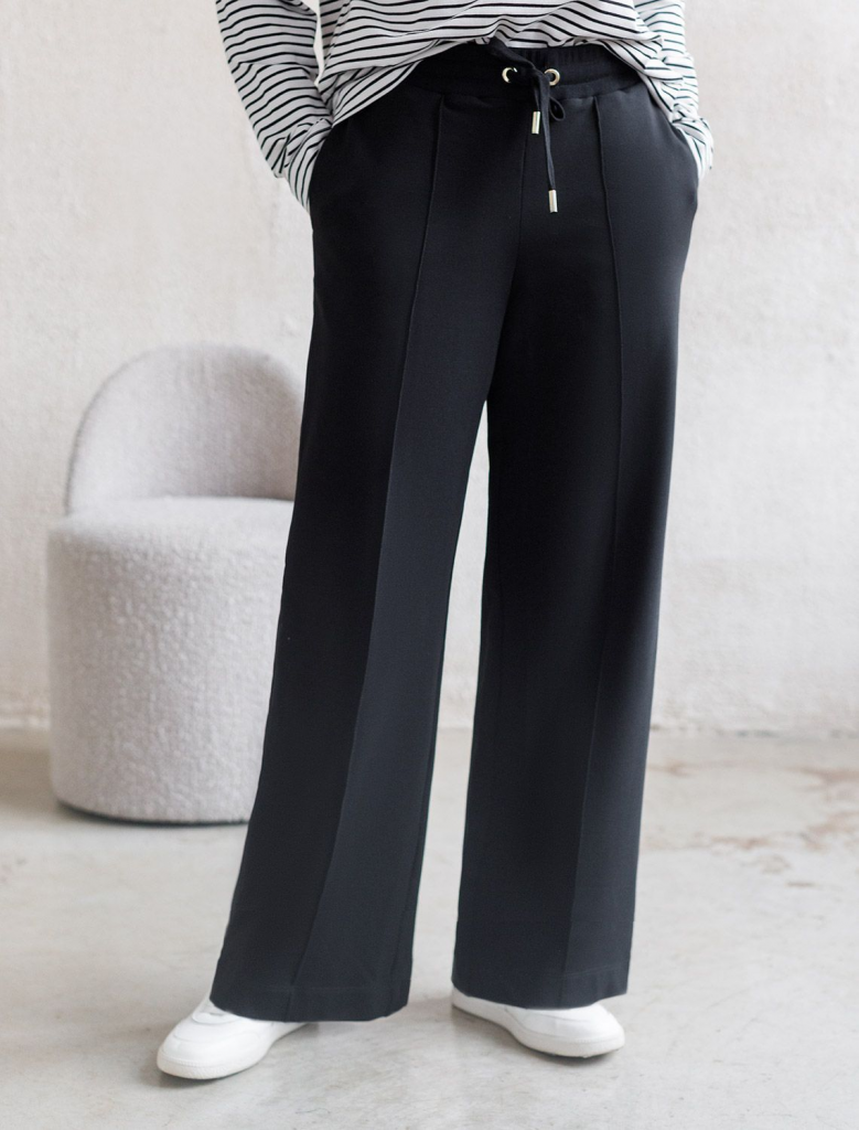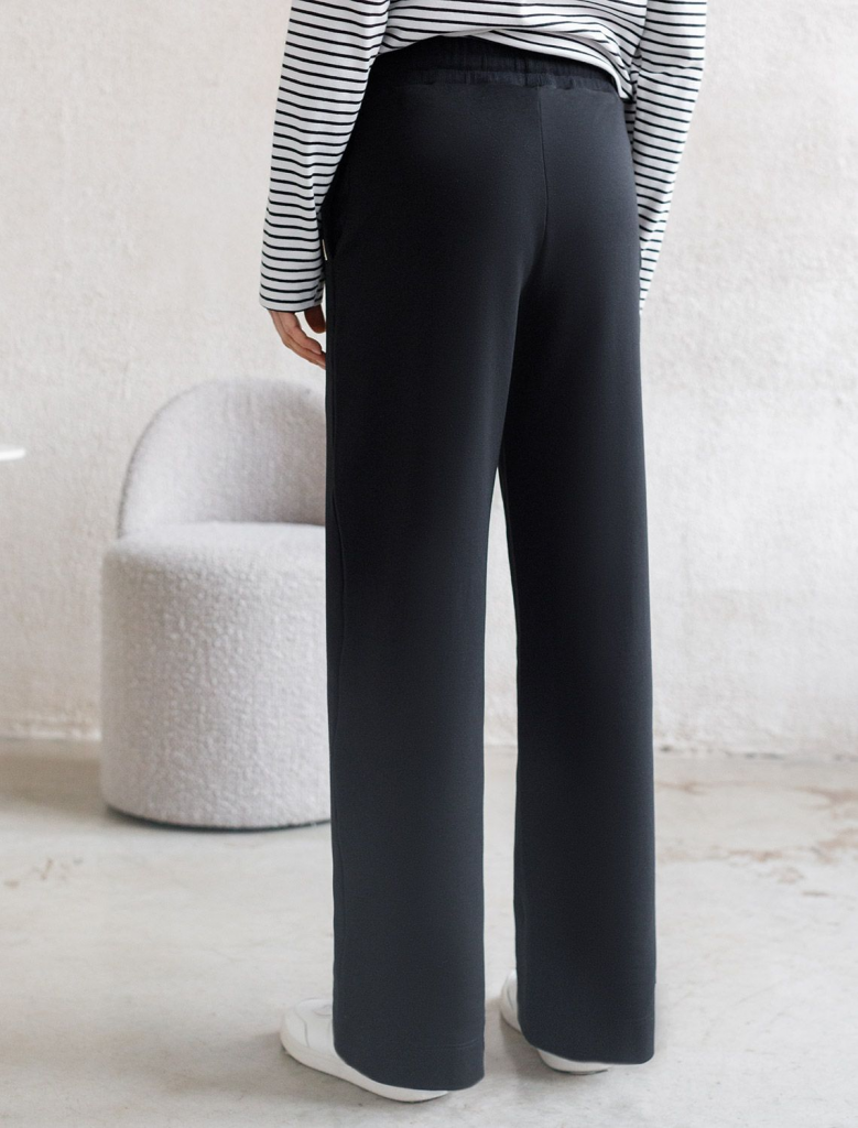 Брюки прямого кроя выполнены из премиального футера-двухнитки. Лаконичный силуэт поддерживают застроченные стрелки, зрительно вытягивающие силуэт. Удобный пояс на резинке регулируется хлопковым шнурком с золотистой фурнитурой. Наличие эластана в составе изделия гарантирует комфорт и долговечность изделия. Свободные брюки хорошо будут сочетаться в костюме с футболкой D49.074 и паркой D49.076