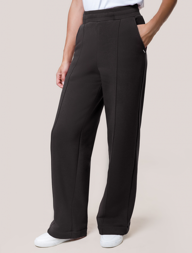 Теплые брюки прямого кроя с удобным поясом на резинке и карманами по бокам выполнены из премиального футера-трехнитки. Наличие эластана в составе гарантирует комфорт и долговечность изделия, материал хорошо пропускает воздух, позволяя телу дышать, а мягкий начес обеспечивает дополнительное тепло и комфорт в прохладную погоду.Эти уютные брюки практичного черного цвета созданы для вашего комфорта. Свободный прямой крой обеспечивает свободу движений и максимальное удобство в любых ситуациях, поэтому они подойдут и на большие размеры, а так же на высокий или низкий рост. Фигура подчеркивается, а силуэт визуально вытягивается за счет кроя палаццо и застроченных декоративных стрелок.Вы можете создать стильный образ на каждый день в сочетании с любой футболкой нашего бренда, худи D49.102 и бомбером D49.103. В повседневных трикотажных брюках вы будете чувствовать себя комфортно и уверенно, наслаждаясь каждым моментом дня.