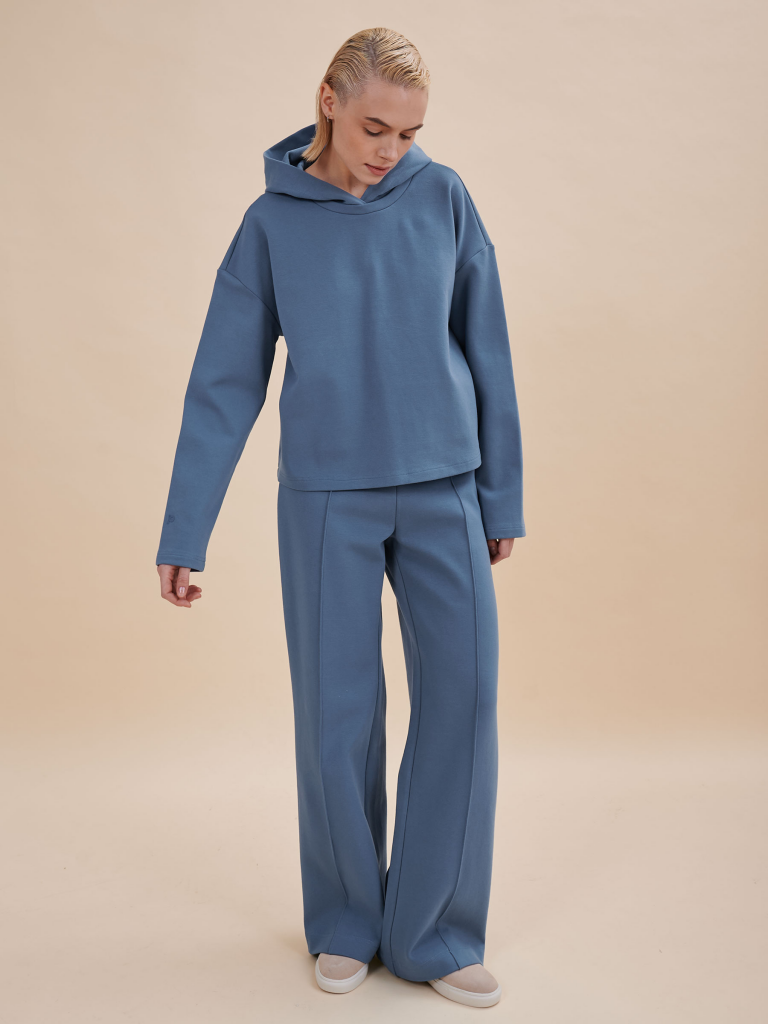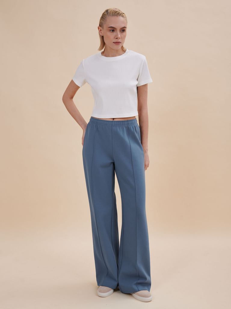 Стильные брюки женские со стрелками по переду. Актуальная модель — брюки плотно садятся по бёдрам, а от бедра – небольшой клёш. Комфортная модель подходит для разных типов фигуры, не сковывает движений. Вертикальные строчки по переду визуально вытягивают силуэт и стройнят. Брюки лаконичного дизайна, без застёжки и карманов. В поясе мягкая и широкая резинка — не давит и не перекручивается. Брюки однотонные, без принта. За ними просто ухаживать. В составе ткани преобладает высококачественный хлопок — штаны мягкие и воздухопроницаемые. Эластан помогает изделию сохранять первозданную форму в течение долгого времени. Женские трикотажные брюки представлены в следующих актуальных цветах: чёрном, голубом, синем, зелёном, белом. Размерная линейка: XS (42): S (44): M (46): L (48): XL (50). Брюки подходят женщинам, девушкам, девочкам-подросткам. Их можно носить на работу, учёбу, они идеальны для отдыха, прогулок, а также как домашние брюки. Подходят для лета и демисезона (осень и весна). Женские брюки на резинке легко комбинировать с разнообразными джемперами, свитерами, футболками. Женские летние брюки — это отличный подарок сестре, маме или подруге на любой праздник. Выбирайте нужный размер по таблице размеров на фото. Цвет товара на экране вашего устройства может отличаться от цвета изделия вживую.