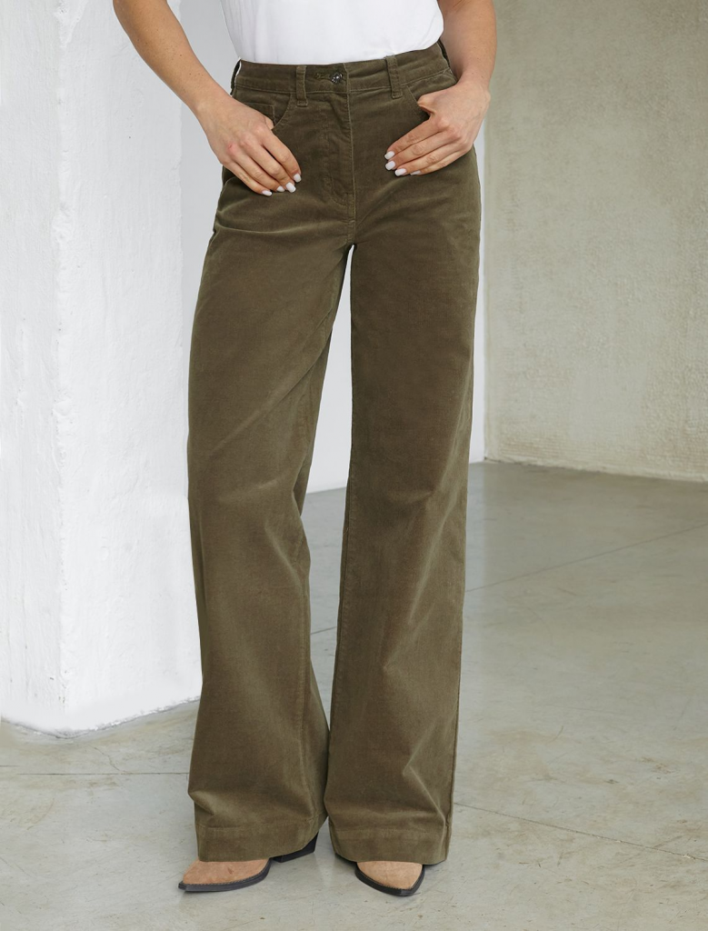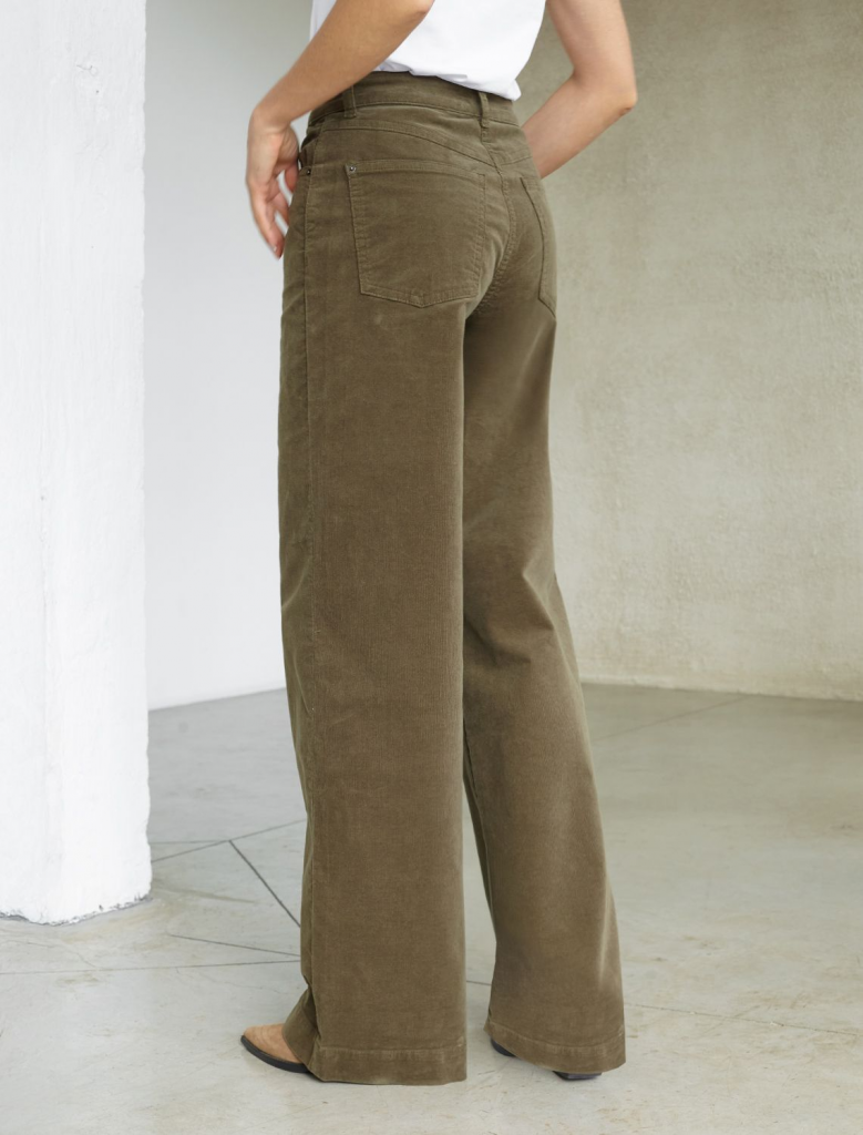 Брюки свободного кроя «трубы» выполнены из мягкого хлопкового микро-вельвета с добавлением эластана. Изделие комфортно садится по фигуре и не сковывает движения. Модель с пятью карманами, как у джинсов дополнена высококачественной фурнитурой с фирменным логотипом бренда. Идеально впишутся в повседневный образ, со свитером крупной вязки, курткой-косухой, ботинками на грубой подошве, челси и казаками.