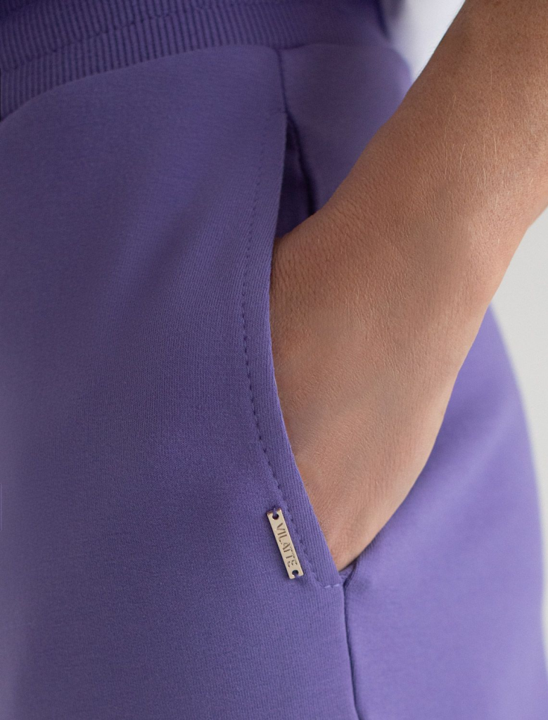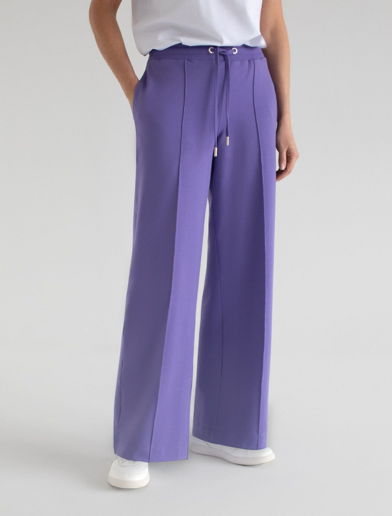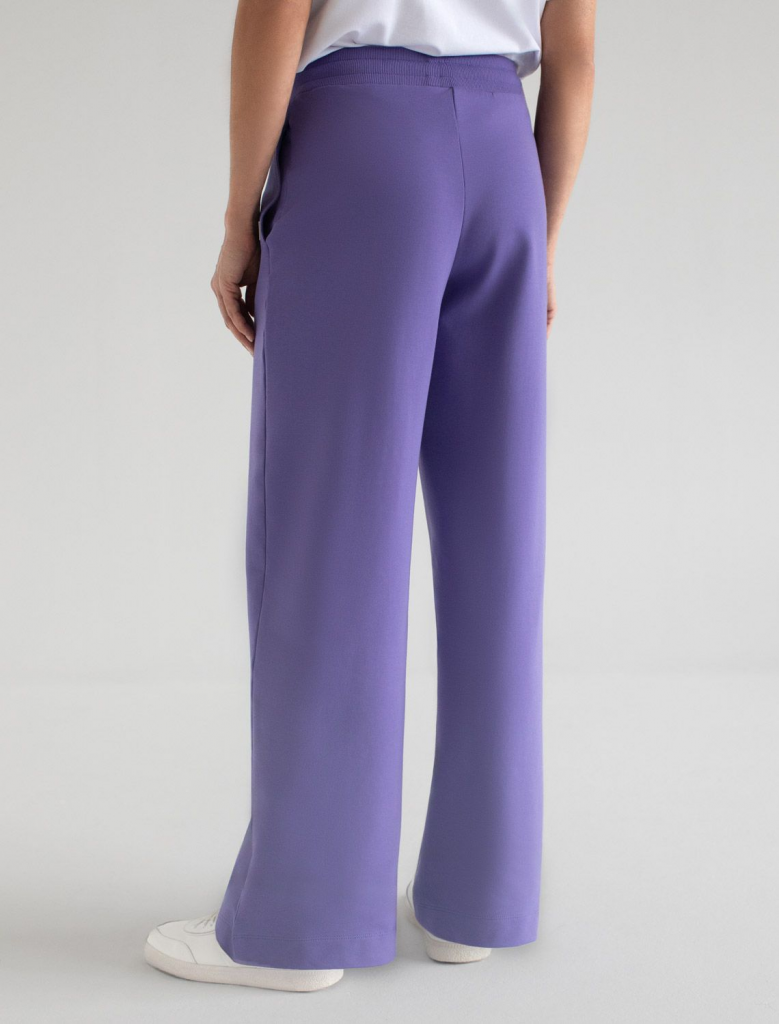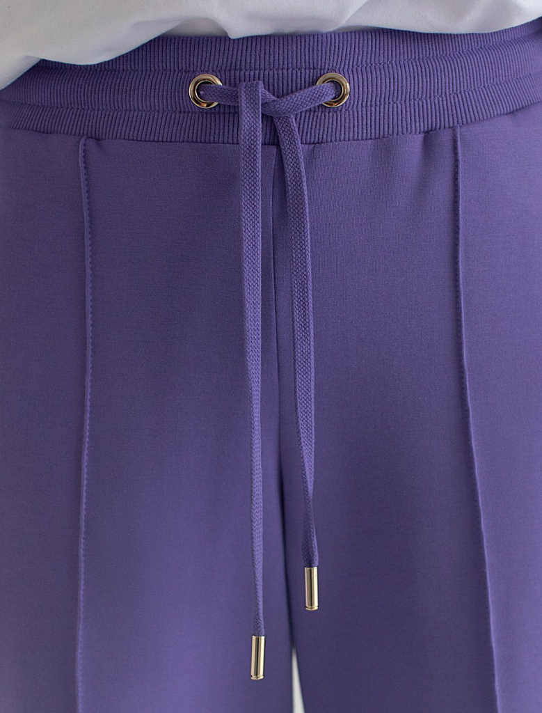 Брюки лавандового цвета прямого кроя выполнены из премиального футера-двухнитки. Лаконичный силуэт поддерживают застроченные стрелки, зрительно вытягивающие силуэт. Удобный пояс на резинке регулируется хлопковым шнурком с золотистой фурнитурой. Наличие эластана в составе изделия гарантирует комфорт и долговечность изделия. Эластичный материал хорошо пропускает воздух, позволяя телу дышать, и легко тянется, не ограничивая движения.Эти уютные брюки созданного для вашего комфорта. Нежный и стильный вариант подходит на любую фигуру, благодаря своей идеальной посадке. Свободный прямой крой обеспечивает свободу движений и максимальное удобство в любых ситуациях, поэтому они подойдут и на большие размеры, включая 56 размер. Стильный расклешенный крой добавляет изюминку в ваш образ. Эти брюки универсальны и могут стать отличным вариантом, как для занятий, так и для повседневной носки. Они легко вписываются в повседневный образ, благодаря универсальности и элегантности. Достоинства фигуры подчеркиваются, а силуэт визуально вытягивается за счет кроя палаццо и стрелок. В этих спортивных брюках вы будете чувствовать себя комфортно и уверенно, наслаждаясь каждым моментом дня.Рекомендуем сочетать с артикулами: D49.160, D49.167, D49.168