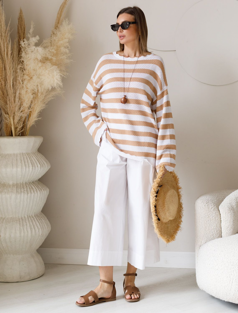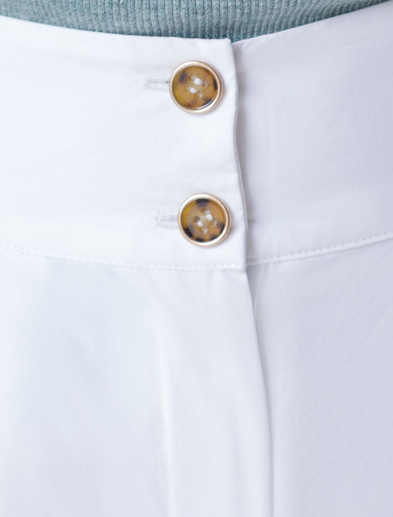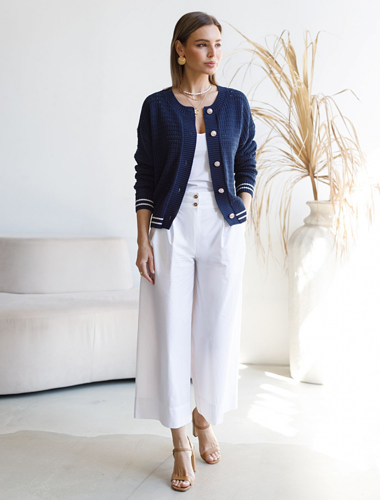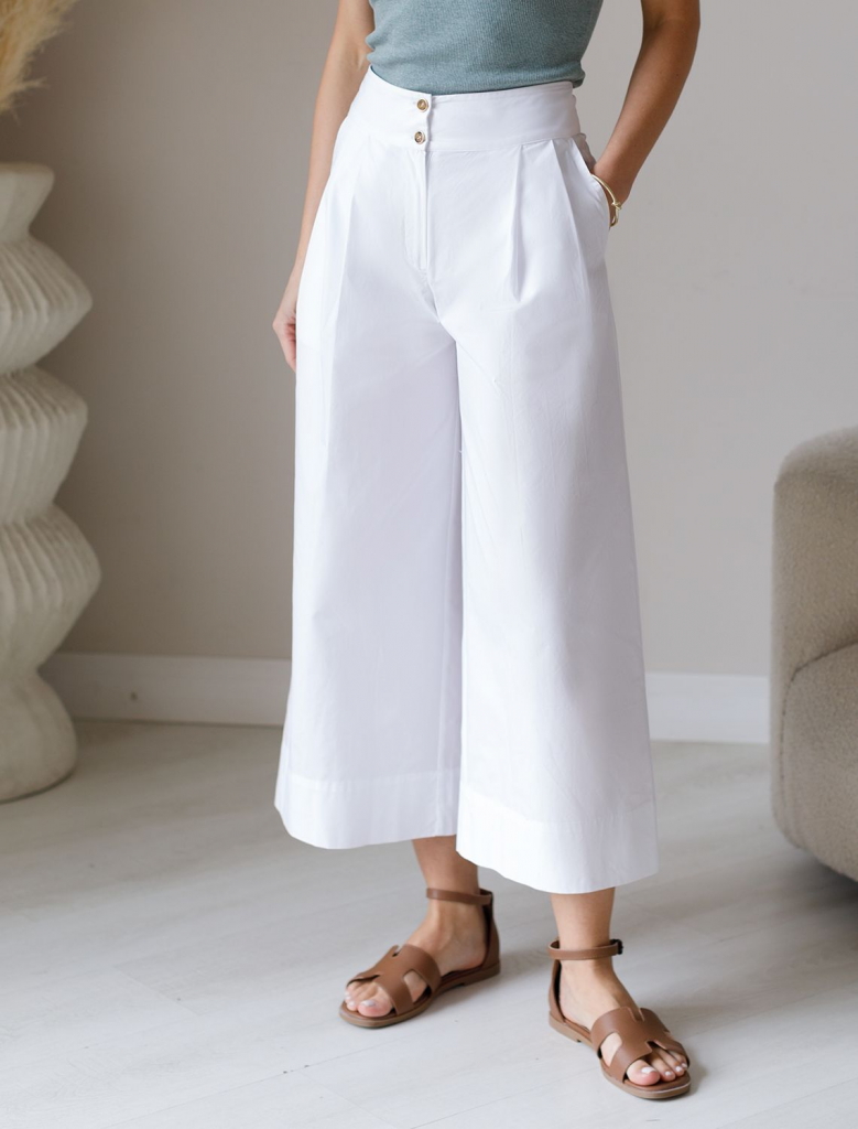 Кюлоты А-силуэта выполнены из легкого хлопкового поплина. Модель с карманами и средней посадкой. Натуральный состав ткани обладает высокой воздухопроницаемостью и гигроскопичностью. В изделии будет комфортно, даже в самое жаркое время года. Подходит для любой фигуры. Сочетается в костюме с блузкой D29.247 и D29.264.