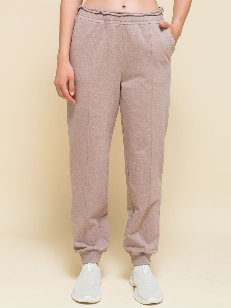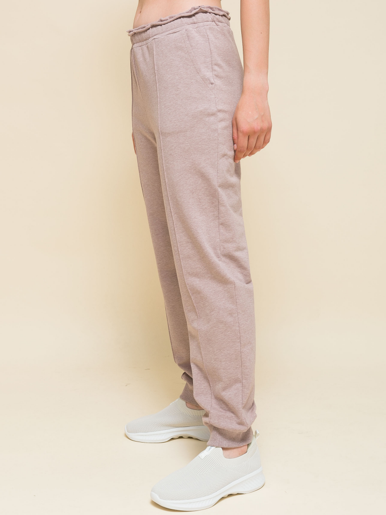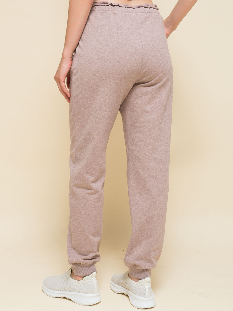 Женские брюки-джогеры со стрелками по переду. Актуальная модель, сочетающая в себе спортивный стиль и элегантность. Брюки свободного кроя из футера с начесом подарят вам ощущение комфорта и уюта. Высокая посадка визуально удлиняет ноги. По бокам теплых брюк удобные наклонные карманы. По низу манжеты — один из модных трендов. В поясе мягкая и широкая резинка — не давит и не растягивается. Оригинальная деталь — верхний срез пояса не обработан, что добавляет изделию утончённую небрежность и делает брюки актуальными в этом сезоне. Брюки однотонные, без принта. За ними просто ухаживать. В составе ткани 100% высококачественного хлопка. Штаны мягкие и воздухопроницаемые. Трикотажные брюки представлены в двух стильных цветах: розовом и шоколадном. Размерная линейка: XS (42): S (44): M (46): L (48): XL (50). Брюки подходят женщинам, девушкам, девочкам-подросткам. Их можно носить на работу, учёбу, они идеальны для спорта, отдыха, а также как домашние брюки. Подходят для зимы, демисезона (осень и весна) и для прохладной погоды летом. Женские брюки на резинке легко комбинировать с разнообразными джемперами, свитерами, футболками. Это отличный подарок сестре, маме или подруге на любой праздник.