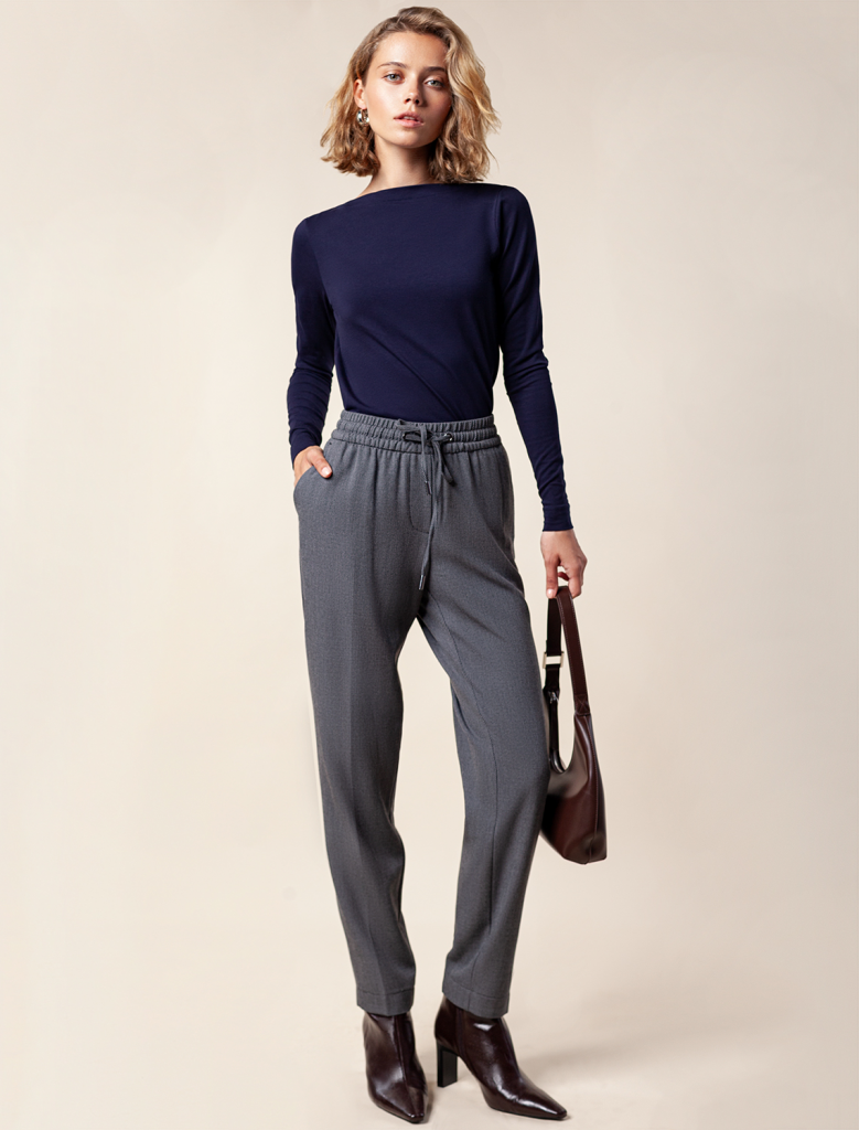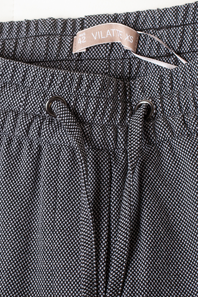 Брюки-бананы выполнены из фактурной поливискозы с добавлением нити эластана. Материал хорошо пропускает воздух, поэтому в изделии не будет жарко даже в отопительный сезон. Комфортная посадка на талии с поясом из эластичной резинки с дополнительными шнурками, позволяют фиксировать модель без ремня. Изделие со стрелками и двумя боковыми карманами, одним карманом в листочку сзади. Брюки-бананы отлично подходят обладательницам фигуры песочные часы, а также женщинам с узкими бедрами помогут уравновесить пропорции.