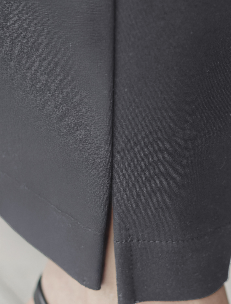 Брюки-дудочки выполнены из джерси. Модель дополнена резинкой сзади, одним вместительным карманом спереди и небольшими боковыми разрезами. Заутюженные стрелки и посадка на талии визуально вытягивают силуэт. Изделие хорошо держит форму, отлично тянется и почти не мнется во время использования. Идеальный вариант в офис или в повседневный классический стиль.