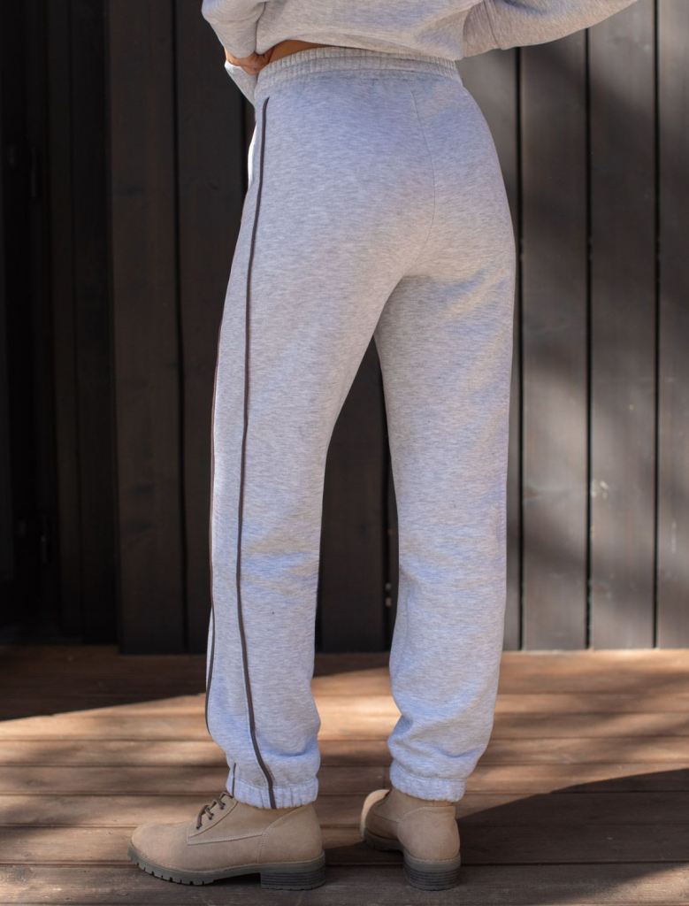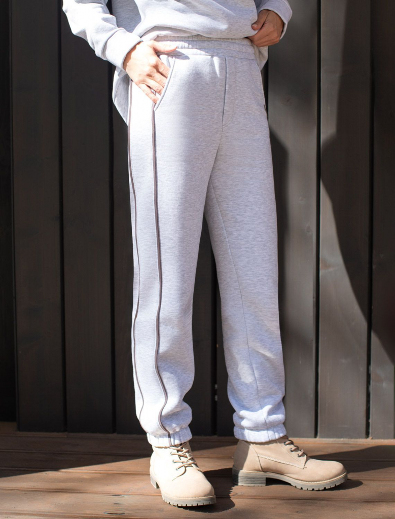 Теплые брюки джоггеры серого цвета с эффектом меланж из эластичного футера трехнитки с начесом созданы для максимального комфорта в холодную погоду. Мягкий материал приятный к телу, хорошо держит форму, не вытягивается и не теряет форму даже при активной носке. Благодаря дышащим свойствам премиального футера, брюки подходят на любую погоду, обеспечивая оптимальный микроклимат и уют. Свободный крой и эластичный широкий пояс делает посадку удобной для разных типов фигуры и размеров, включая большие и маленькие. Контрастные тонкие лампасы добавляют актуальности образу. Благодаря особенностям трехниточного плетения и внутреннему слою с начесом, эти брюки отлично сохраняют тепло в холодные осенние и зимние дни, при этом в них вы будете выглядеть модно и современно. Сочетайте в комплекте с худи D49.142 и бомбером D49.143