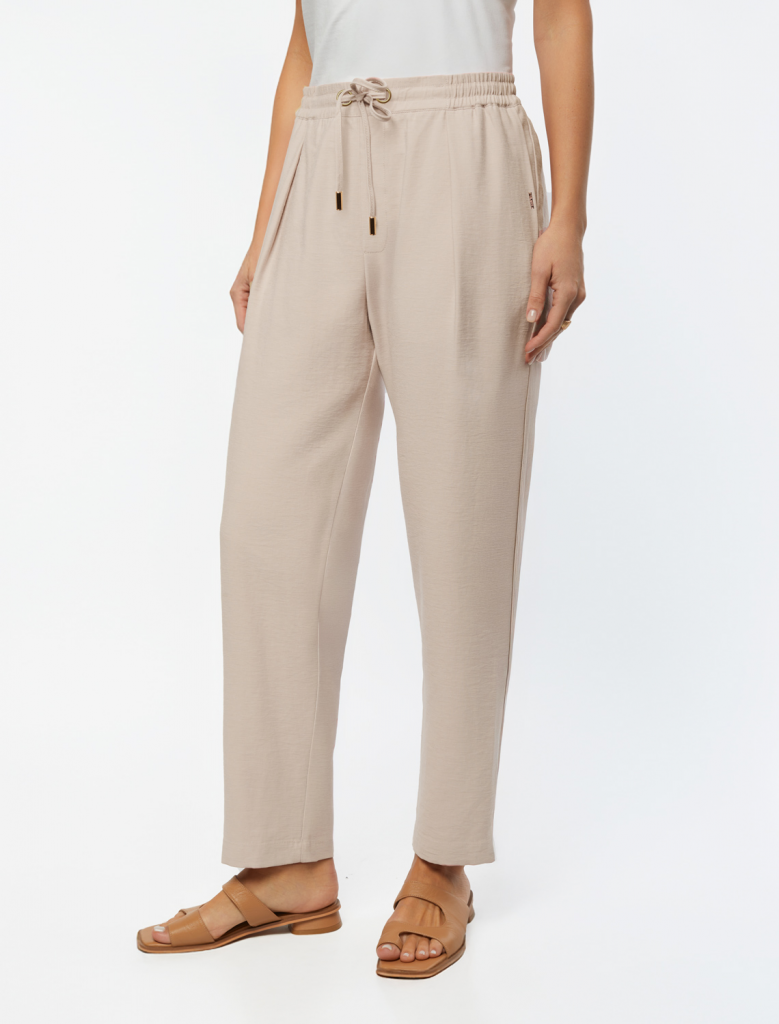 Брюки выполнены из плотного лиоцелла. Модель дополнена карманами и поясом с эластичной резинкой и регулируемым шнурком с золотистой фурнитурой. Ткань изделия отлично держит форму, плавно драпируется и не просвечивает. В теплое время года приятно охлаждает кожу. Добавление синтетических волокон в составе изделия, предотвращает сминаемостьи поддерживает формоустойчивость. Брюки сочетаются в костюме с топом D23.063 и блузкой D29.266, D29.267 и жилетом D27.002