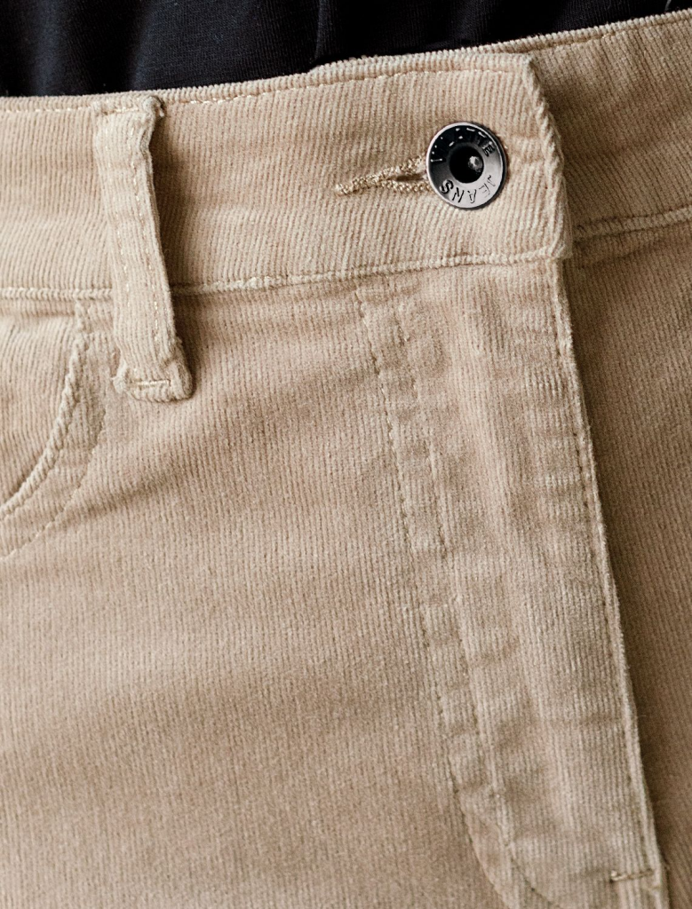 Брюки выполнены из мягкого хлопкового микро-вельвета с добавлением эластана. Изделие комфортно садится по фигуре и не сковывает движения. Модель с пятью карманами, как у джинсов-скинни дополнена высококачественной фурнитурой с фирменным логотипом бренда. Хорошо комбинируется с вязаным трикотажем, блузками и денимом. Как альтернатива брюкам, в нестрогий офисный дресс-код.