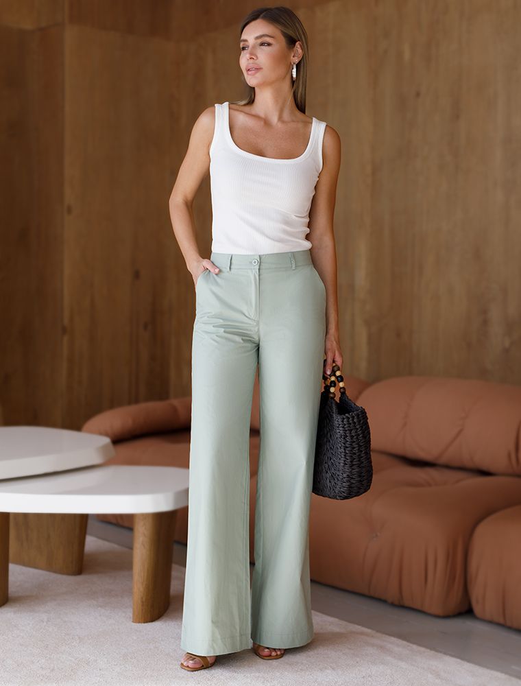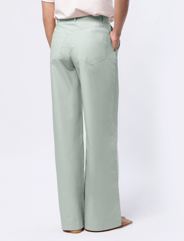 Широкие прямые брюки выполнены из плотного поплина. Натуральный состав ткани обладает высокой воздухопроницаемостью, а также способностью поглощать и отдавать влагу. Подходит для повседневной носки, гарантируя абсолютный комфорт, особенно в жаркое время года. Классическая модель с карманами впишется в любой гардероб.
