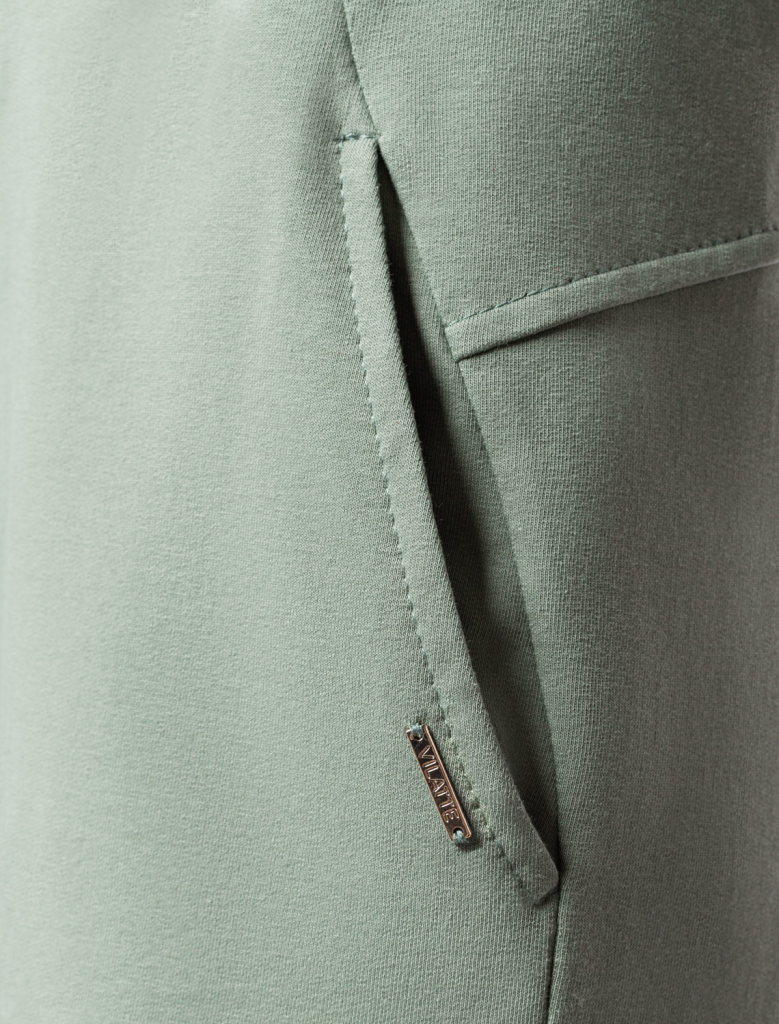 Брюки выполнены из эластичного футера двухнитки. Изделие дополнено боковыми карманами с фирменным логотипом бренда. Пояс на резинке регулируется потайным хлопковым шнурком. Эластан в составе гарантирует комфорт и формоустойчивость. Модель сочетается в костюме с свитшотом D49.072 и паркой D49.076