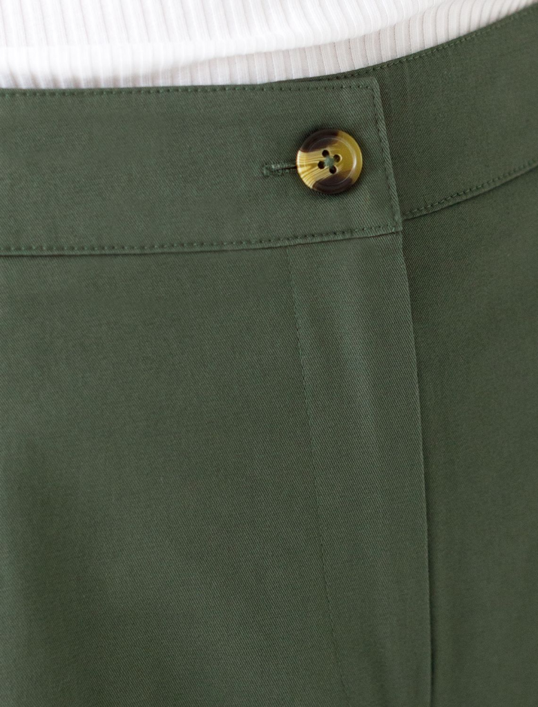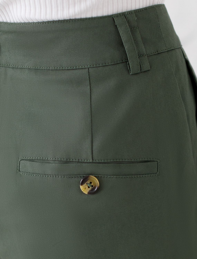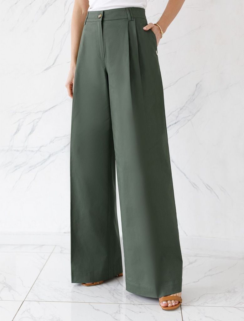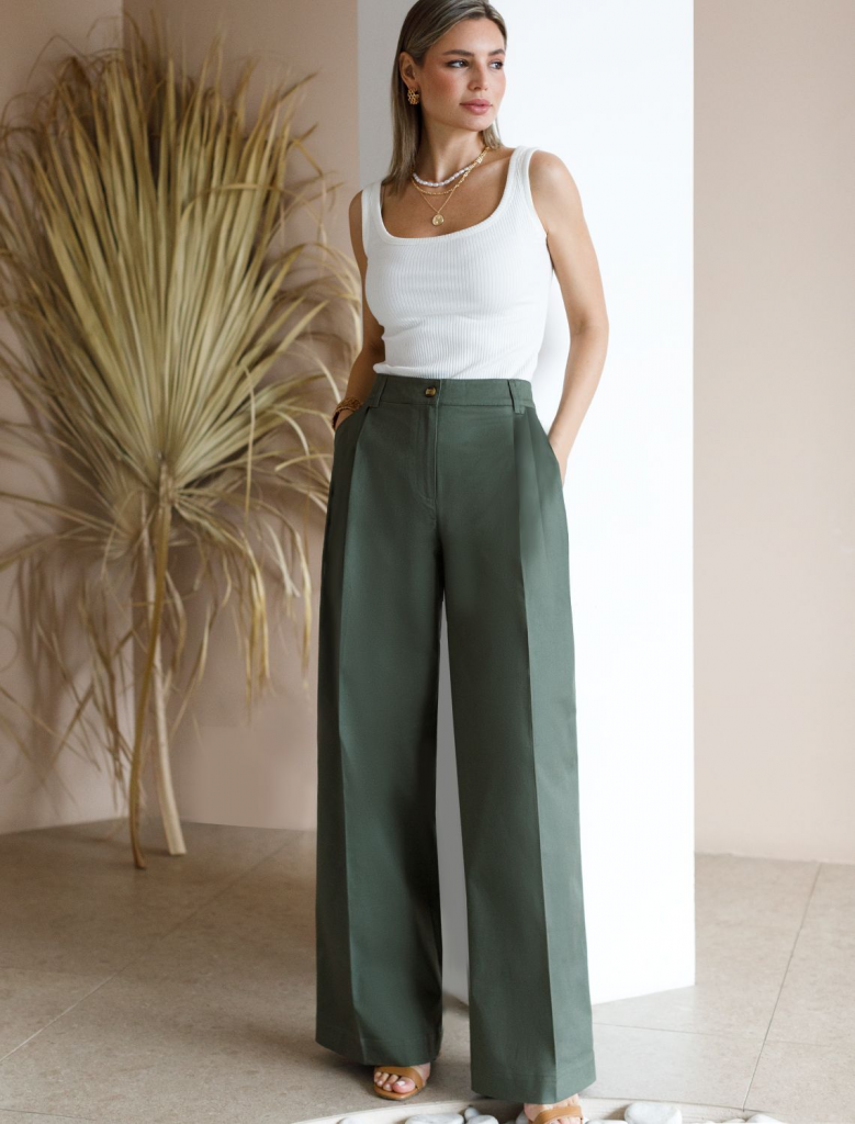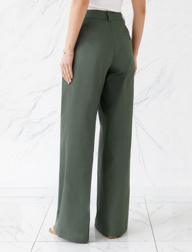 Брюки выполнены из хлопкового твила. Изделие дополнено двумя вариантами шлёвок, что позволяет использовать ремни разной ширины. Модель имеет два боковых и один задний карман. Защипы у пояса и стрелки вдоль брючины визуально вытягивают силуэт и подчеркивают талию. Благодаря наличию эластана в составе изделие сохранит свой безупречный внешний вид в течение долгого времени. Обладает высокой воздухопроницаемостью, в брюках будет комфортно даже в жаркое время года.