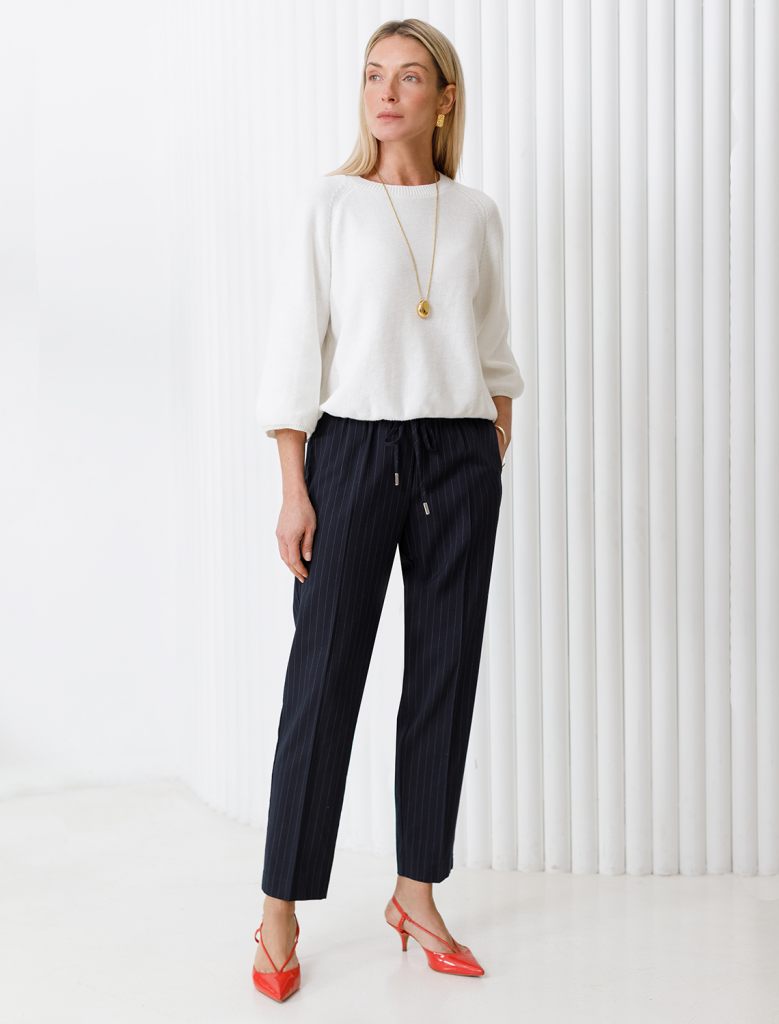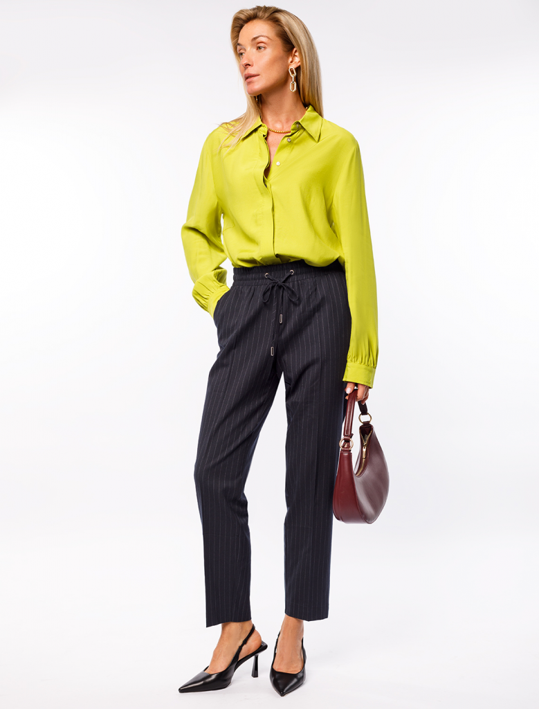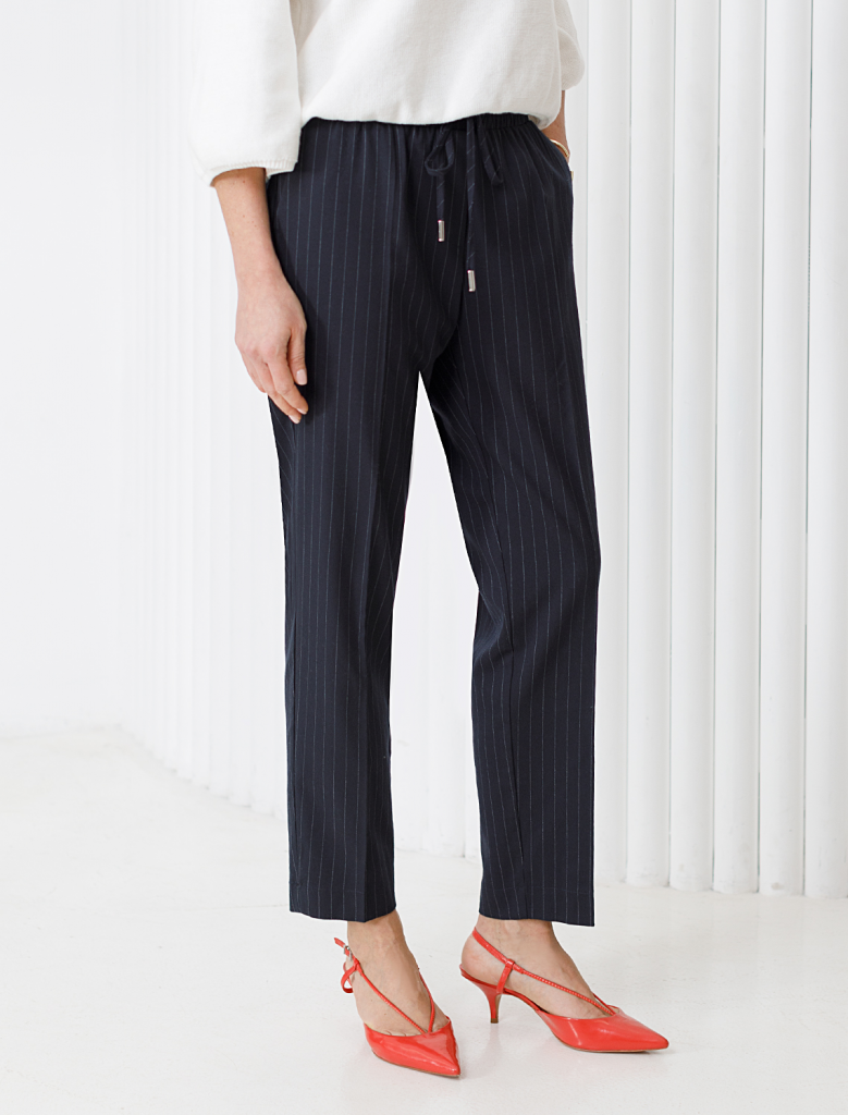Брюки выполнены из премиальной поливискозы. Модель дополнена поясом на резинке с регулируемым шнурком. Изделие хорошо подойдет как для строгого делового образа с блузкой и жакетом, так и для более расслабленного с футболкой и водолазкой. Эластичный материал изделия поддерживает оптимальный микроклимат, формоустойчивость и комфорт в течение всего дня.