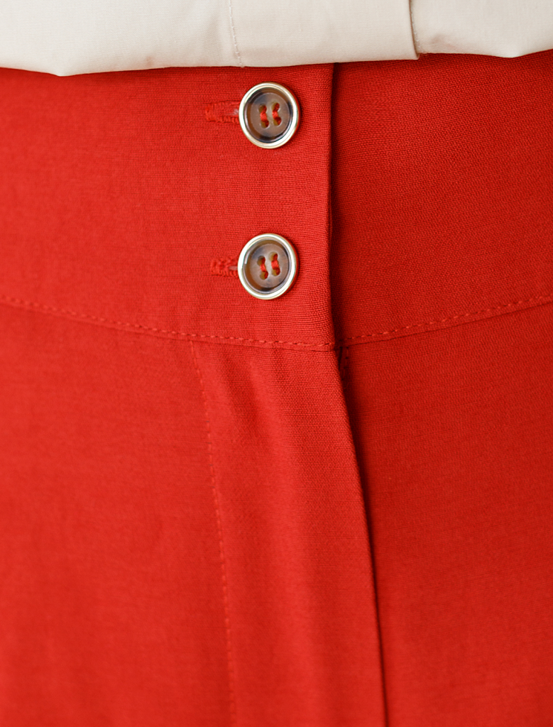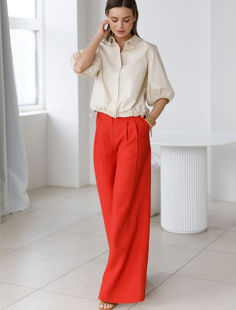 Брюки выполнены из плотного лиоцелла. Модель дополнена карманами и высоким поясом на пуговицах. Ткань изделия отлично держит форму, плавно драпируется и не просвечивает. В теплое время года приятно охлаждает кожу. Добавление синтетических волокон в составе изделия, предотвращает сминаемостьи поддерживает формоустойчивость. Брюки сочетаются в костюме с топом D23.063 и блузкой D29.266, D29.267 и жилетом D27.002
