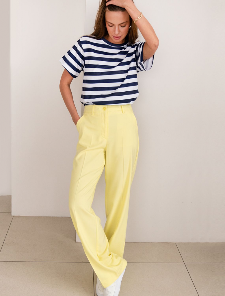 Брюки прямого кроя из мягкой эластичной поливискозы с фактурой. Классическая форма - база на все времена. По бокам два кармана, с задней части изделия один карман в листочку с фирменным логотипом бренда. Совет стилиста: носите в костюме с жакетм D21.069 как хорошую альтернативу вместо привычного офисного дресс-кода. С футболкой, курткой из денима и кедами на прогулку.