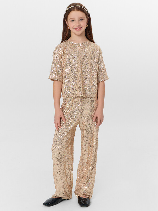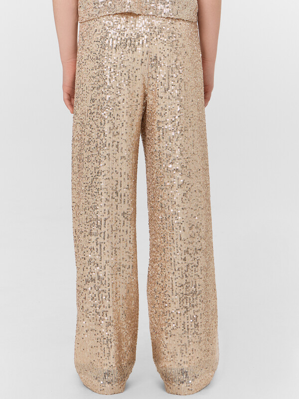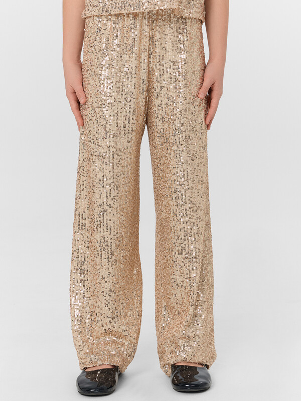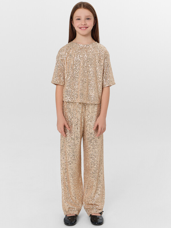 Брюки свободного силуэта. Пояс обработан жаккардовой тесьмой JT-35. Подкладка из трикотажного кулирного полотна. Низ изделия обработан швом в подгибку.